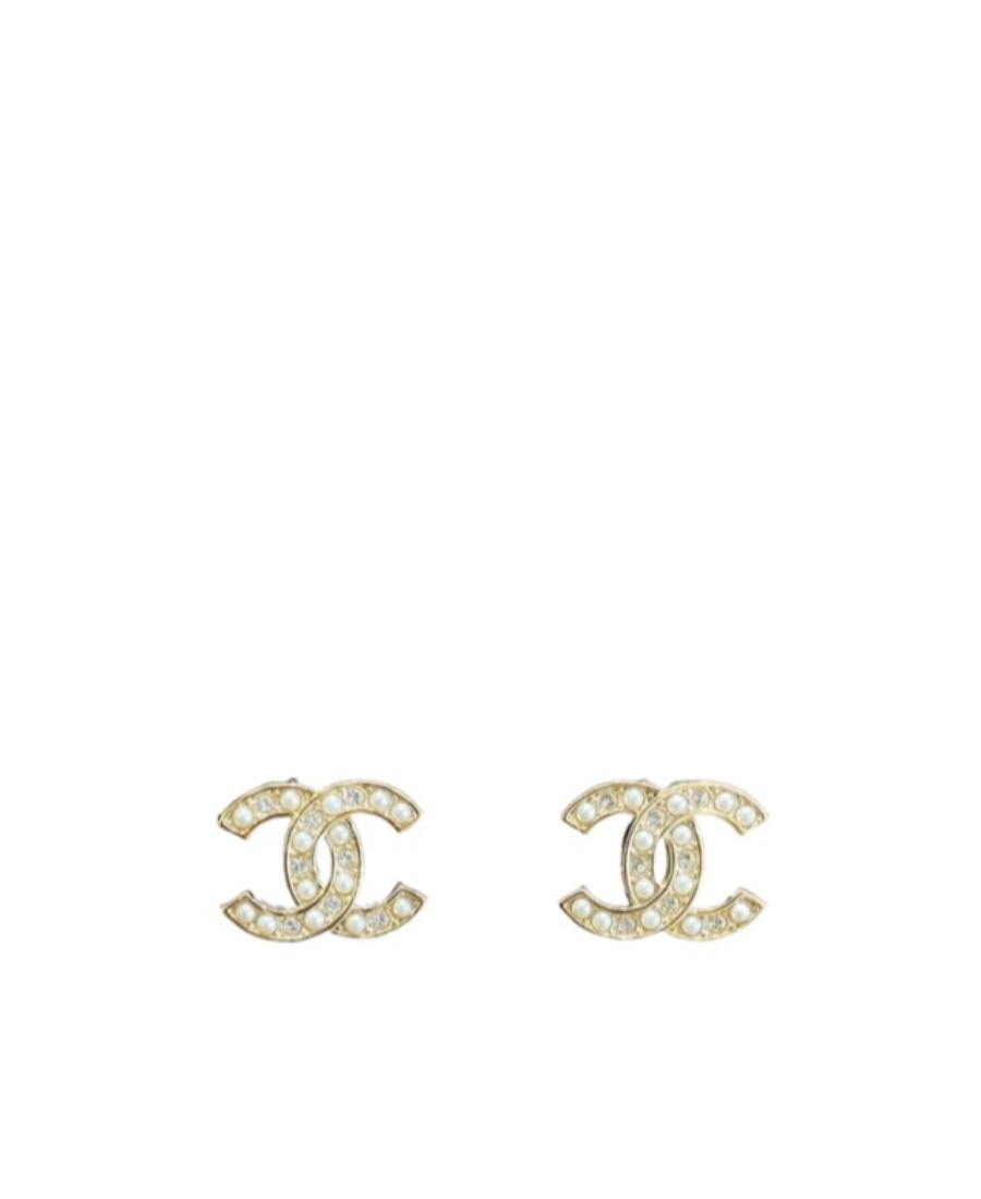 【24B】 CHANEL香奈儿 立体双C吊坠 - 耳钉 女款 金色/粉色