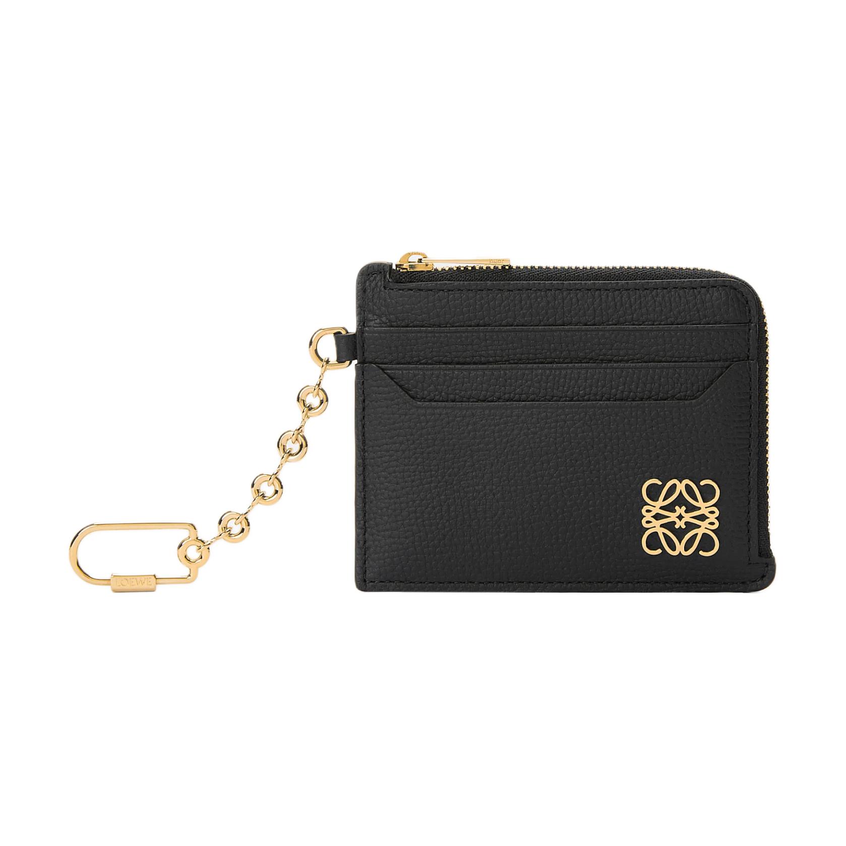 LOEWE罗意威 Anagram 品牌徽标标识 鹅卵石纹牛皮革 卡包 女款 黑色拼金色