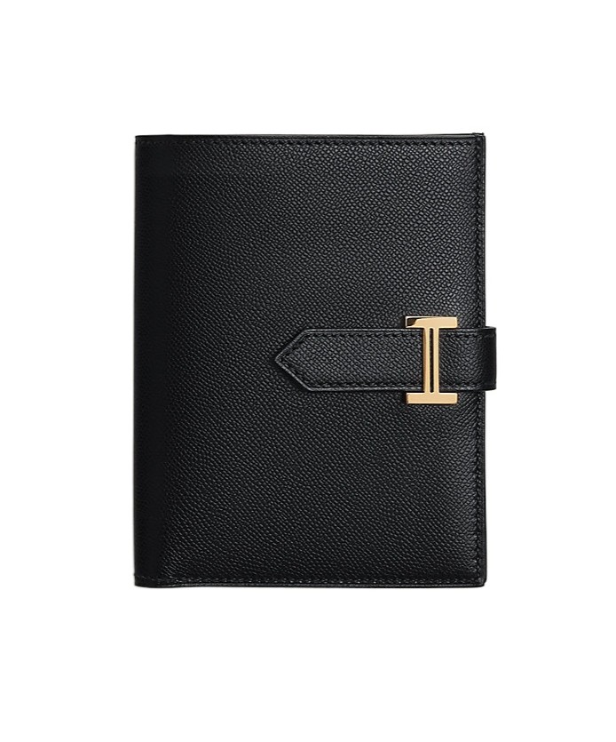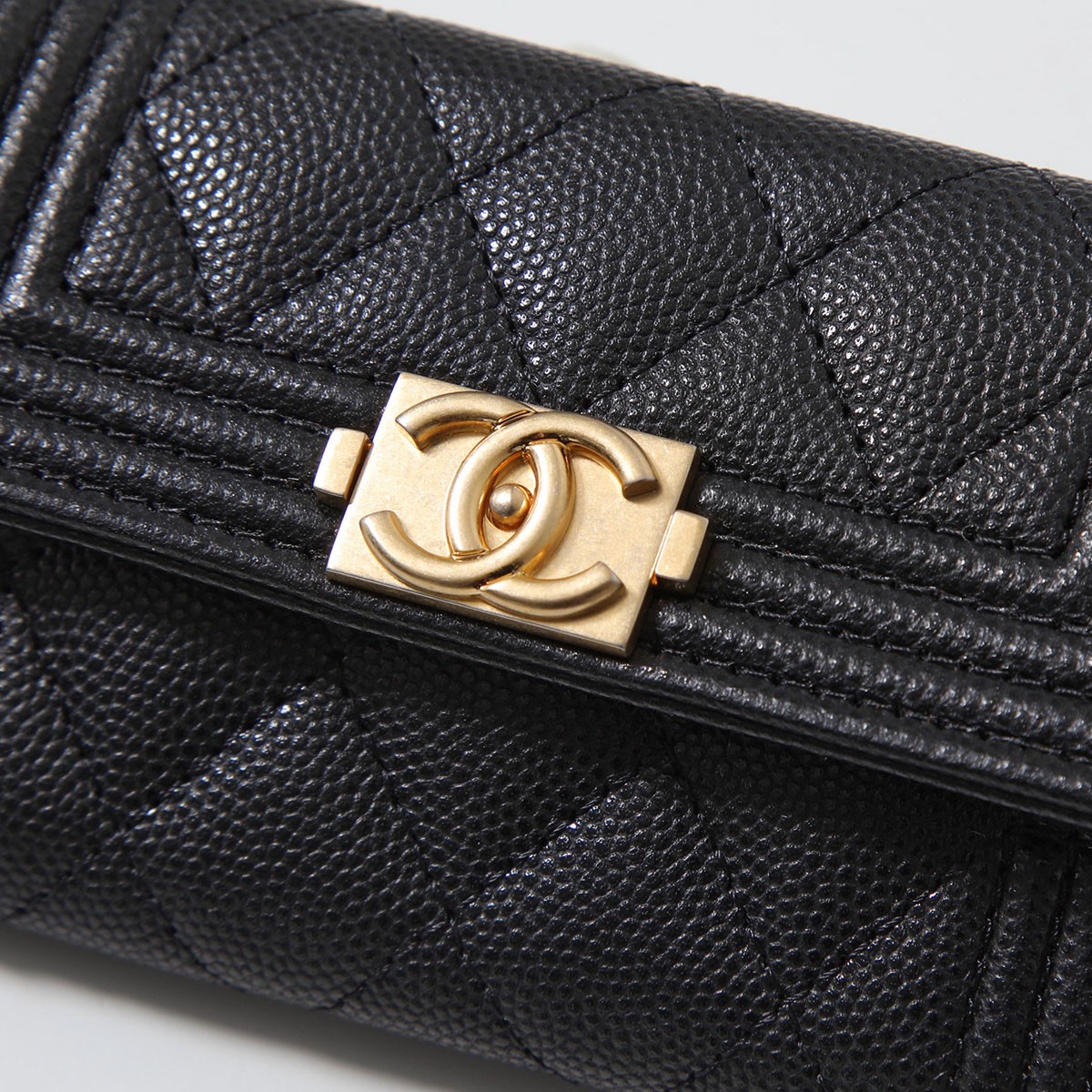 黑色菱格纹荔枝皮金扣钱包卡包