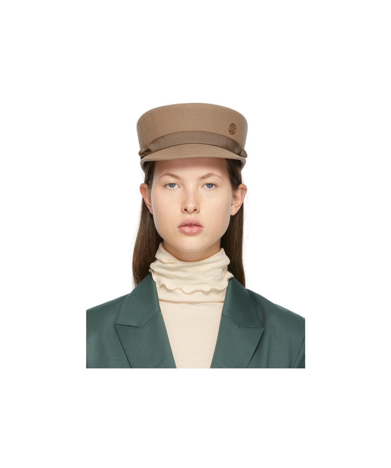 Maison Michel 纯色设计 兔毛毡 帽子 男女同款情侣款 棕色