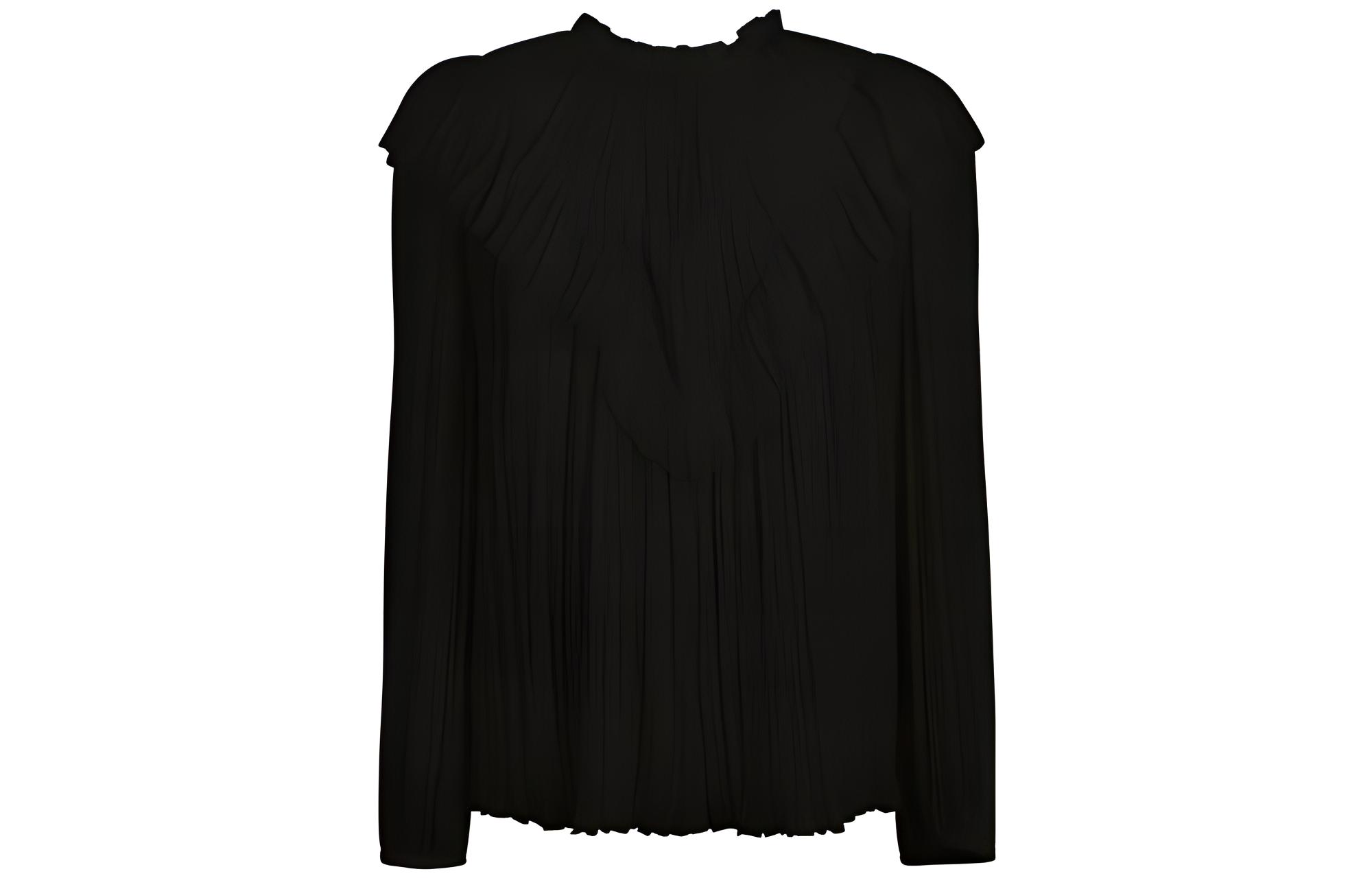 Chloe蔻依 SS23 纯色褶裥长袖衬衫 女款 黑色