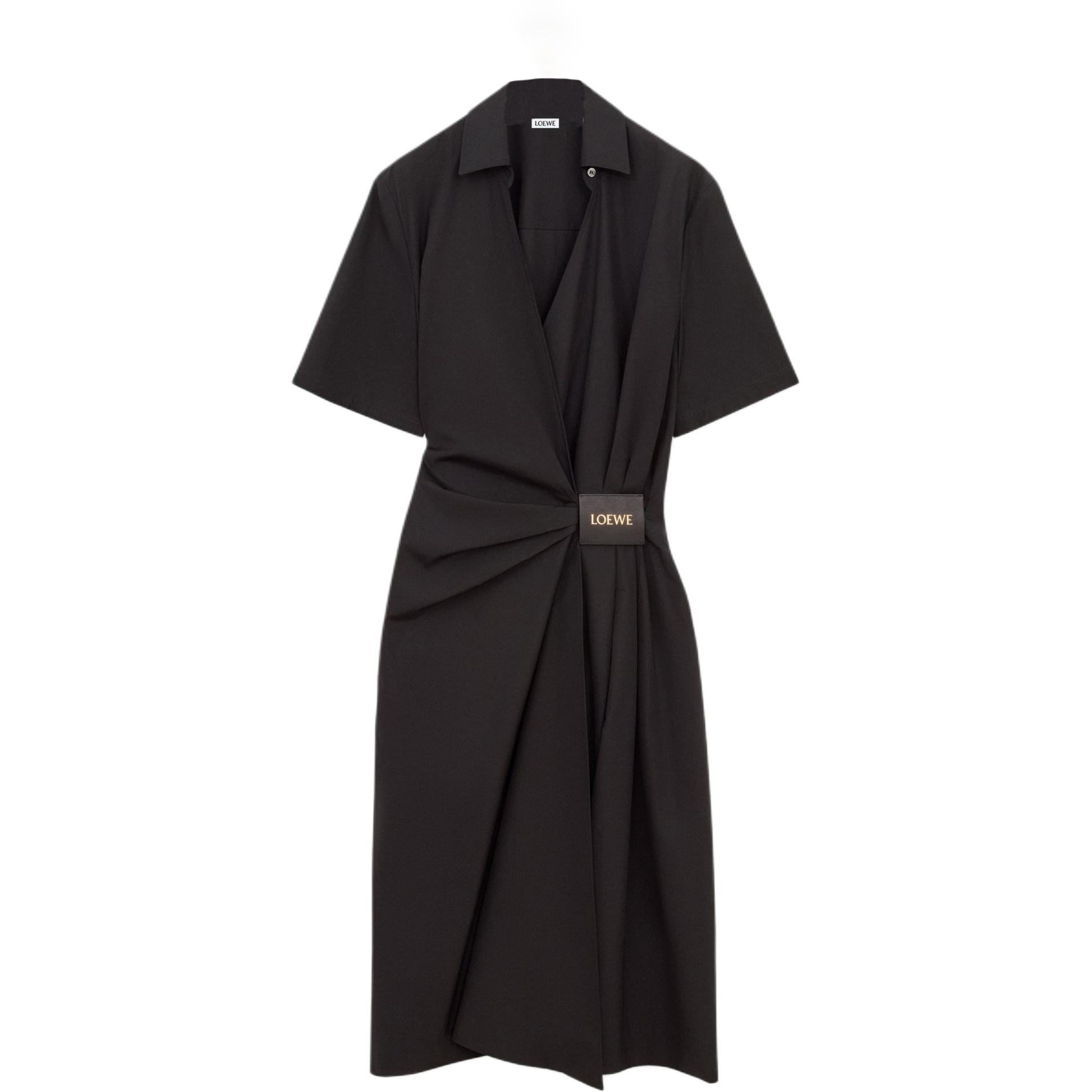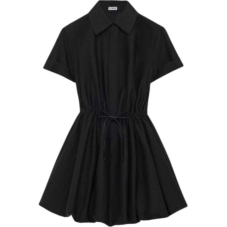 LOEWE罗意威 FW25 女装预选系列棉质和丝绸华达呢松紧腰短袖连衣裙 女款