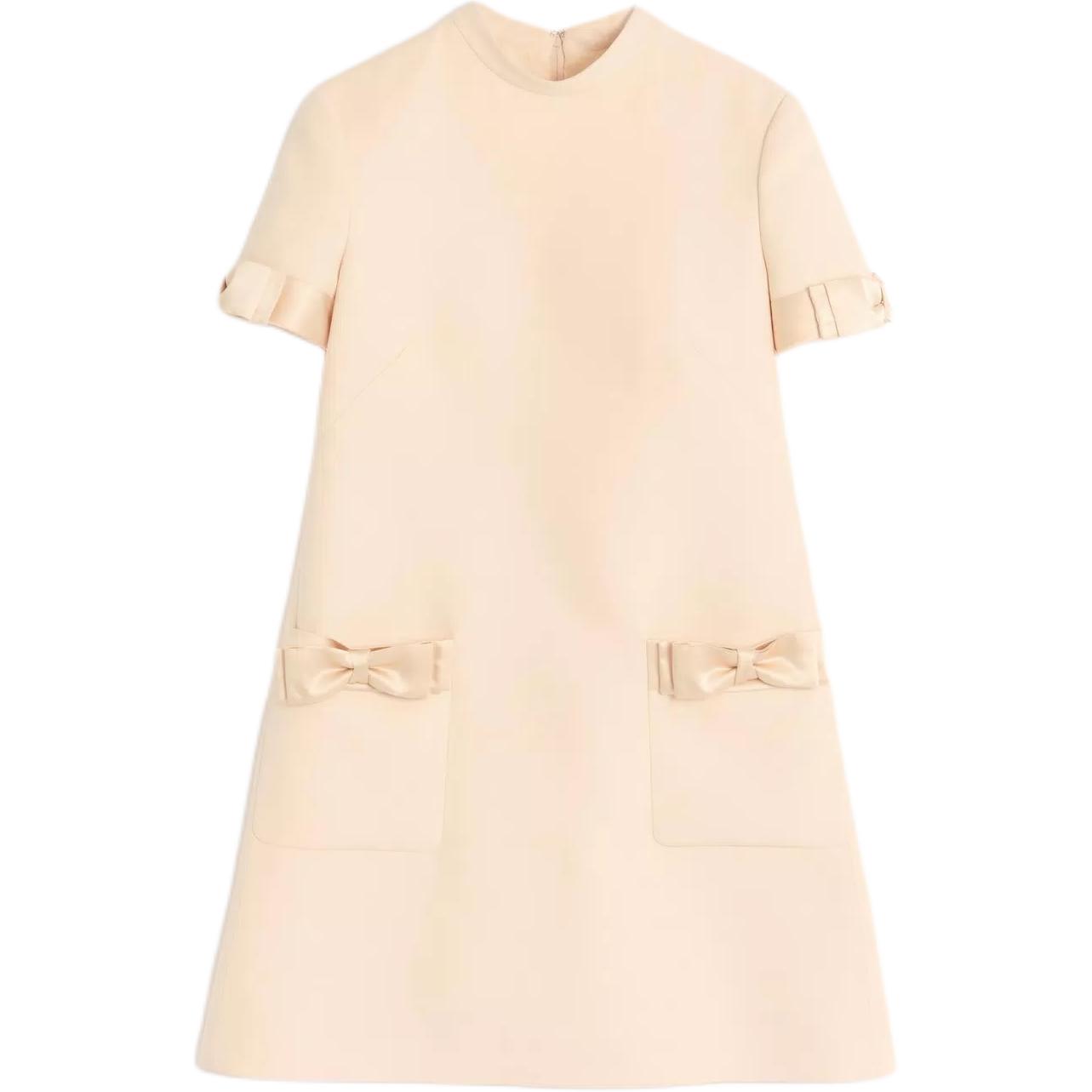 Valentino华伦天奴 CREPE COUTURE SS25 乔其纱褶饰短款绉纱短袖连衣裙 女款 米黄色