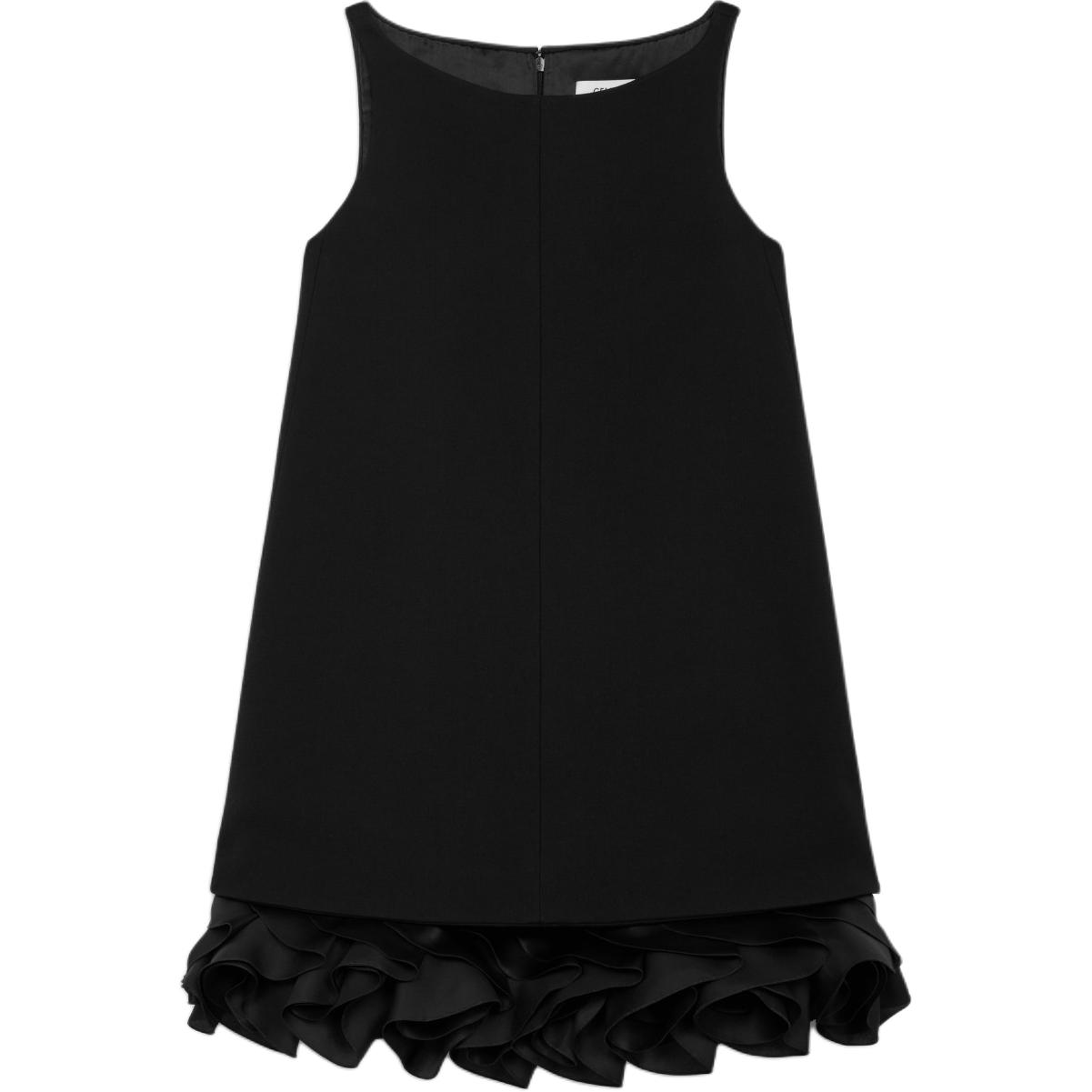 CELINE赛琳 SS25 纯色皱褶双层羊毛迷你无袖连衣裙 男女同款 黑色
