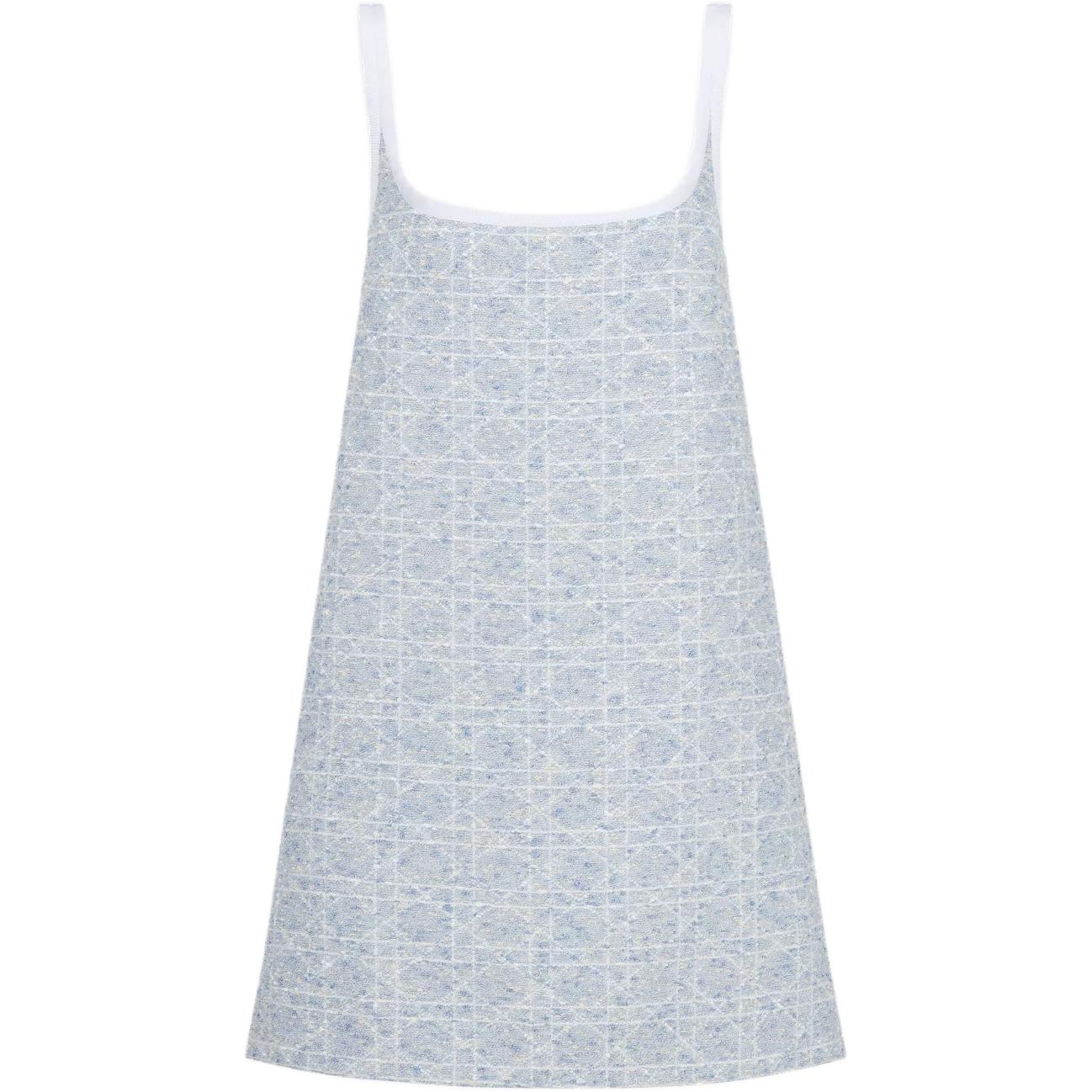 DIOR迪奥 SS25 短款喇叭型混纺花呢藤格纹吊带连衣裙 女款 天蓝色