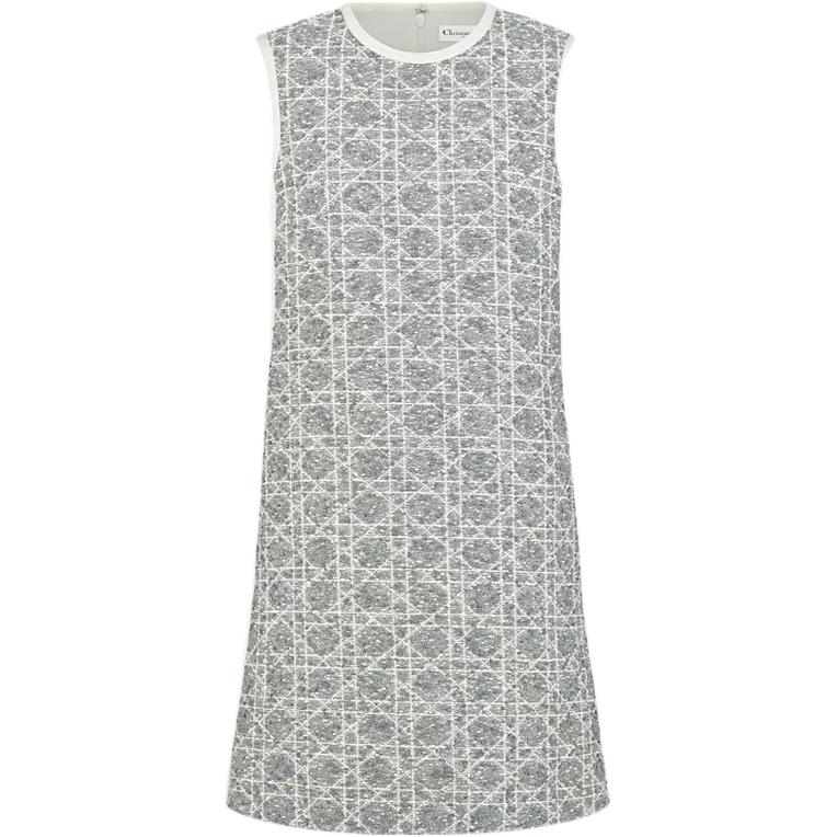 DIOR迪奥 FW25 秋季女装系列 棉质混纺粗花呢藤格纹无袖连衣裙 女款 灰色