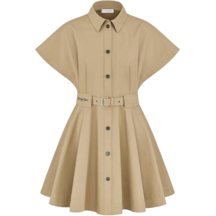 DIOR迪奥 Dioriviera 棉质华达呢配腰带修身蝙蝠袖短款衬衫式短袖连衣裙 女款 卡其色