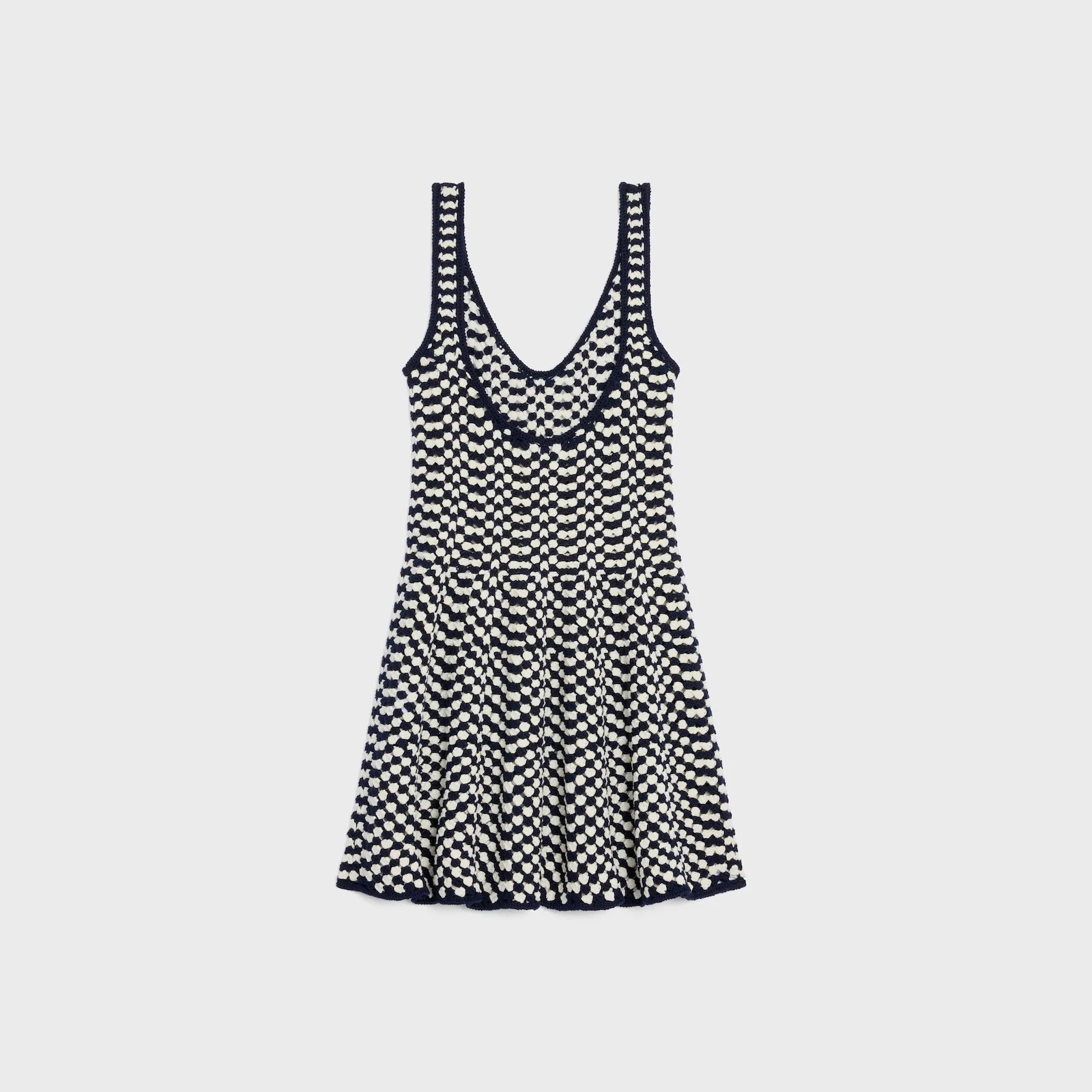 CELINE赛琳 SS25 迷你滑板编织刺绣V领无袖连衣裙 女款 蓝白色