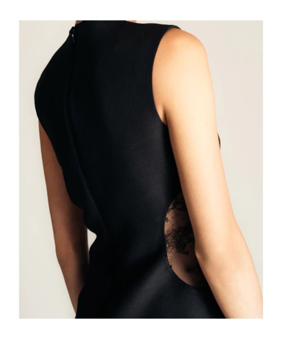 Valentino华伦天奴 纯色侧边镂空效果修身圆领短款无袖连衣裙 女款 黑色