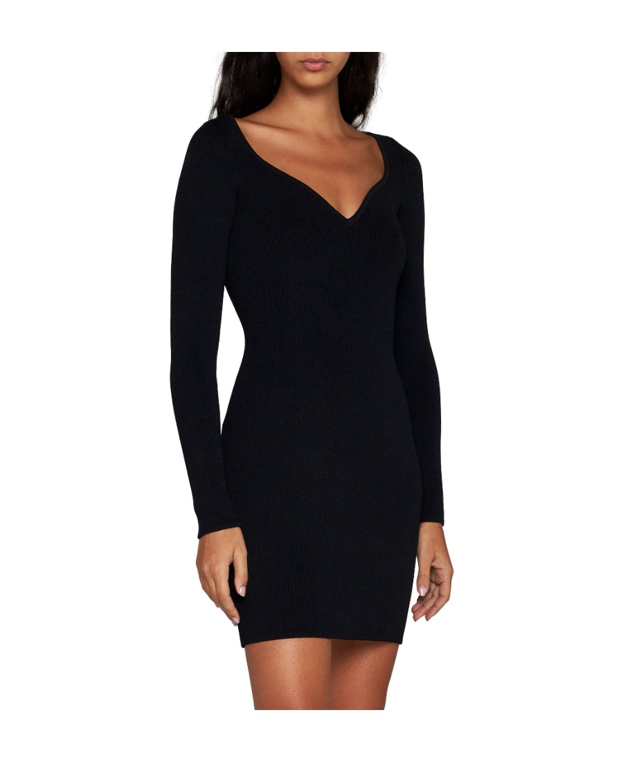 Alaia SS23 纯色V领修身短款休闲长袖连衣裙 女款 黑色