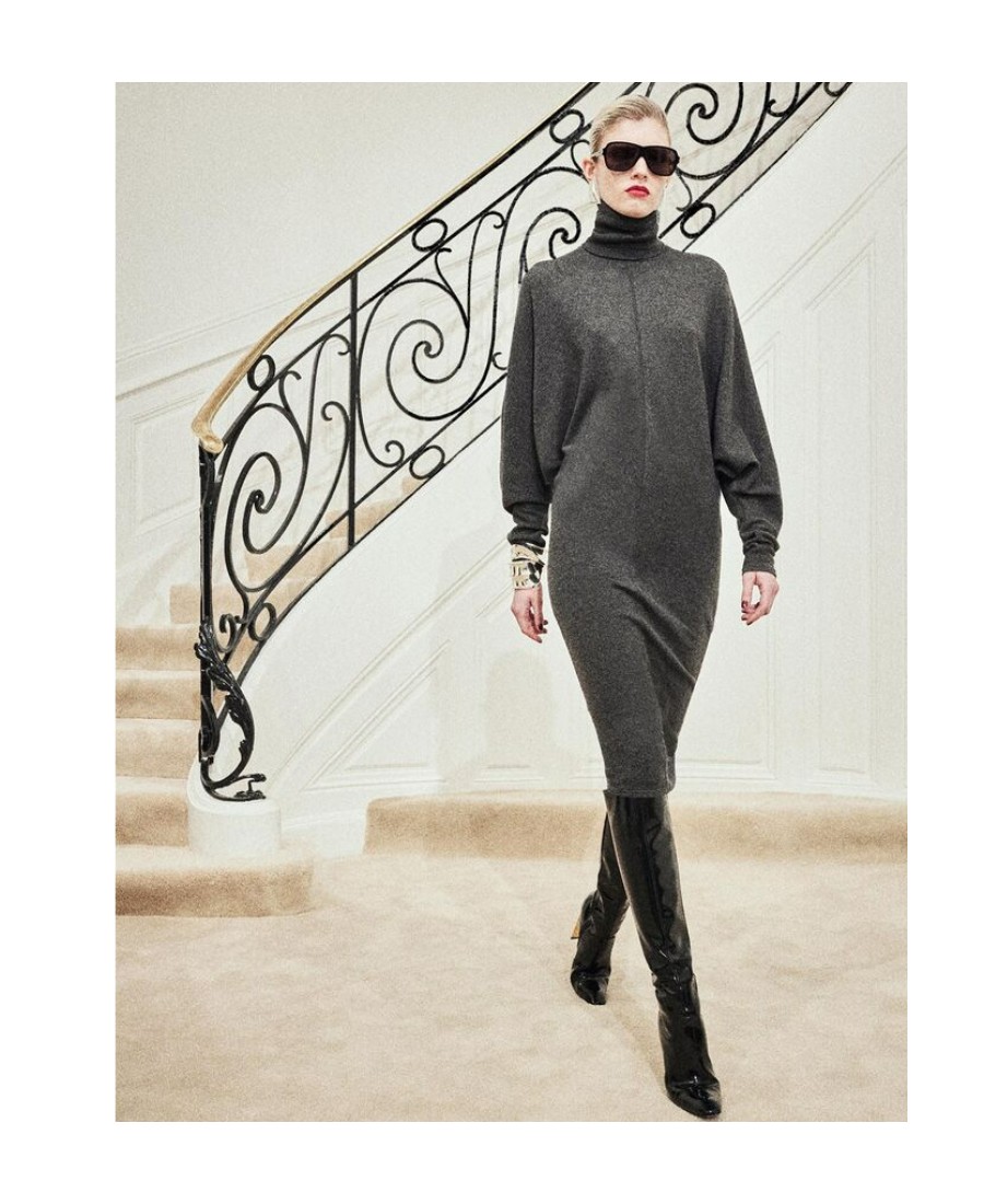 SAINT LAURENT圣罗兰 纯色高领中长款长袖连衣裙 女款 灰色