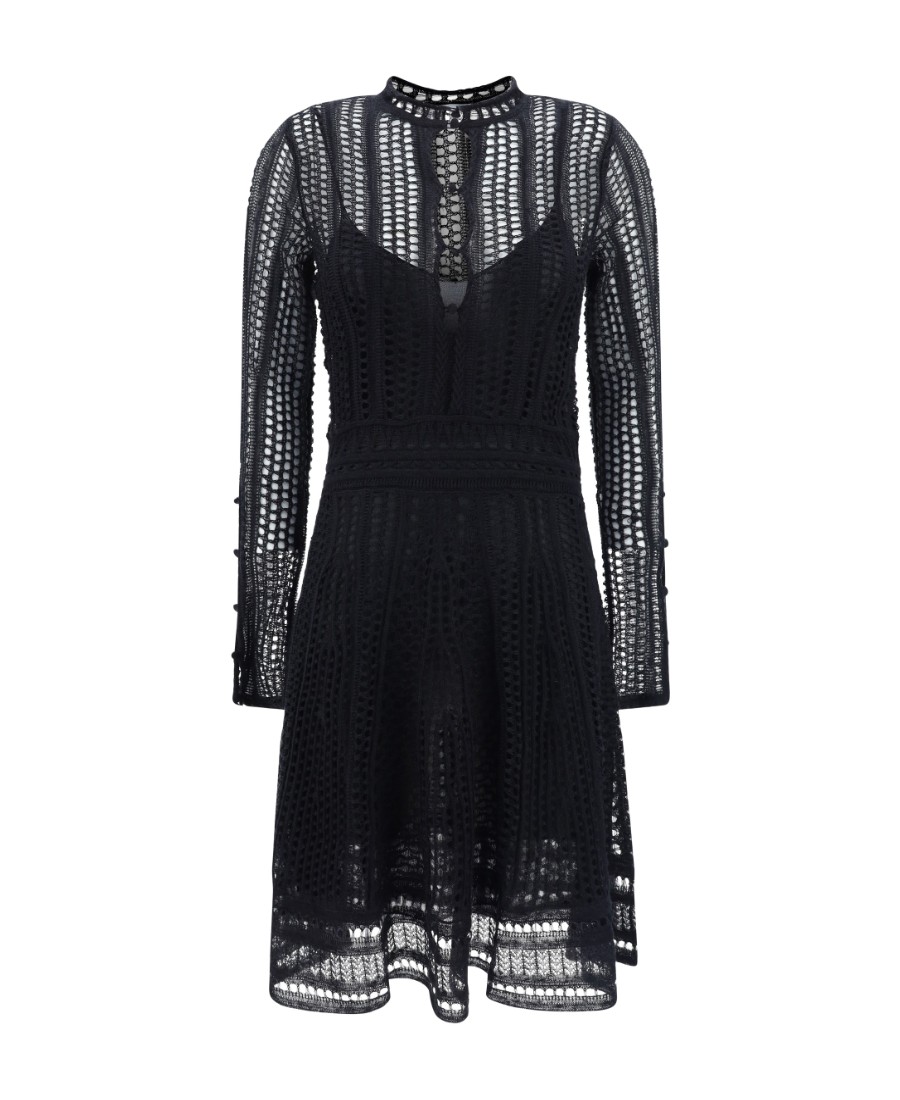 Chloe蔻依 半透明镂空中长款长袖连衣裙 女款 黑色