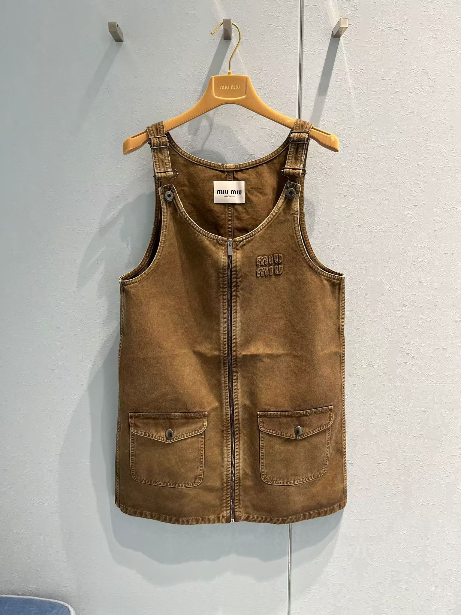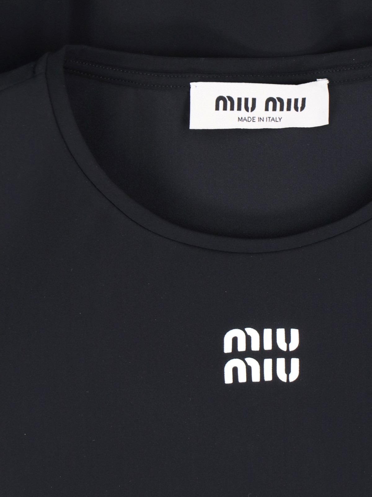 MIU MIU缪缪 FW24 Logo刺绣褶饰细节迷你短袖连衣裙 女款 海军蓝