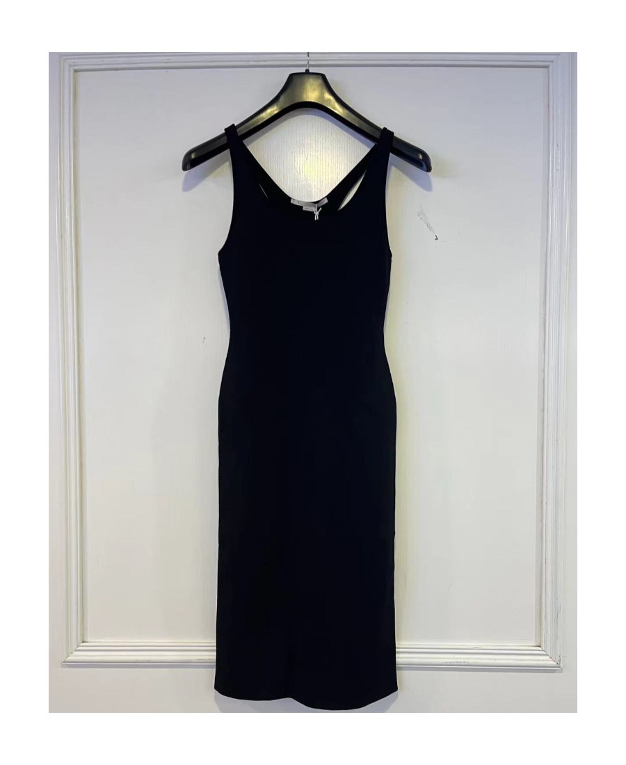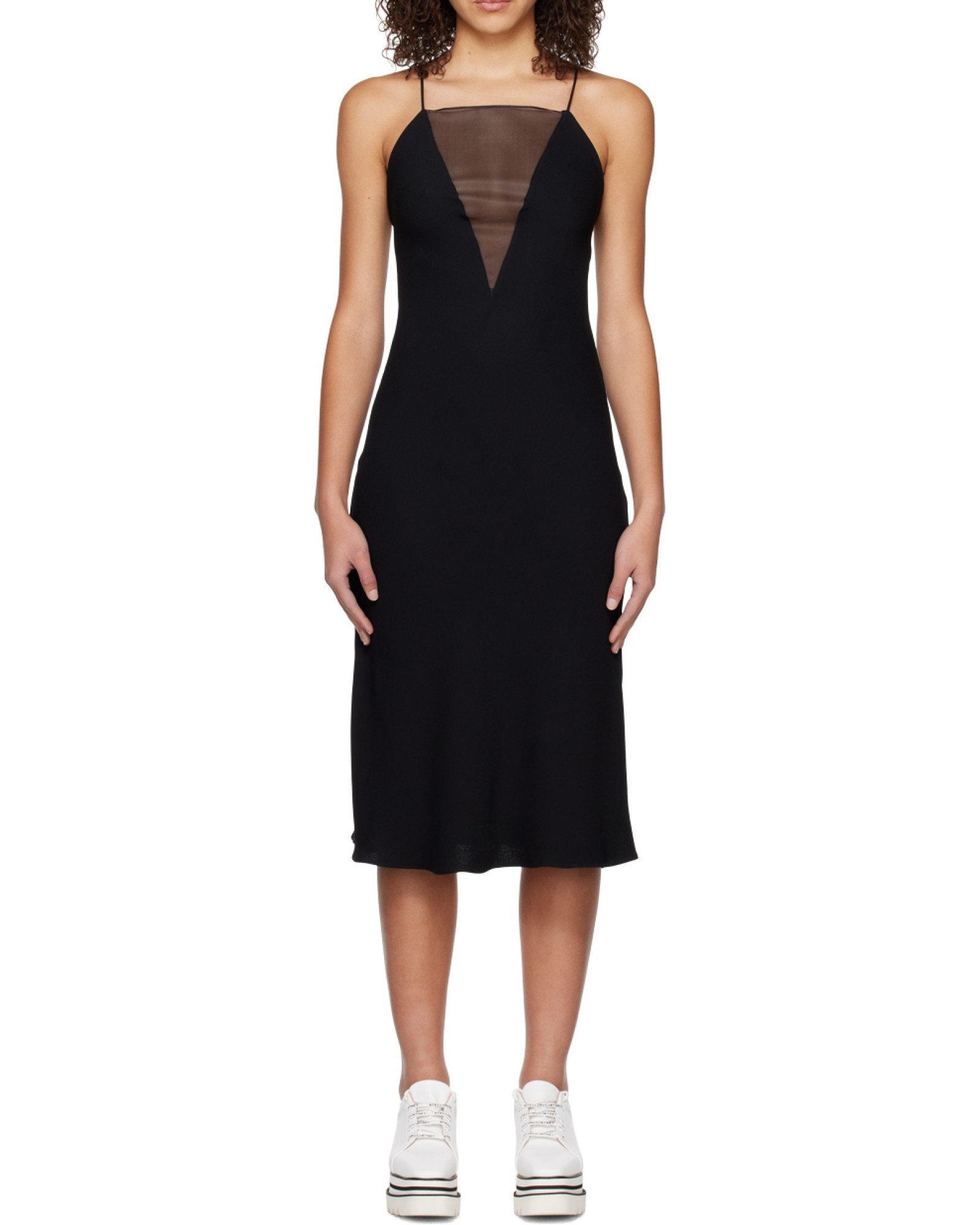 Stella McCartney 纯色V领中长款无袖吊带连衣裙 女款 黑色