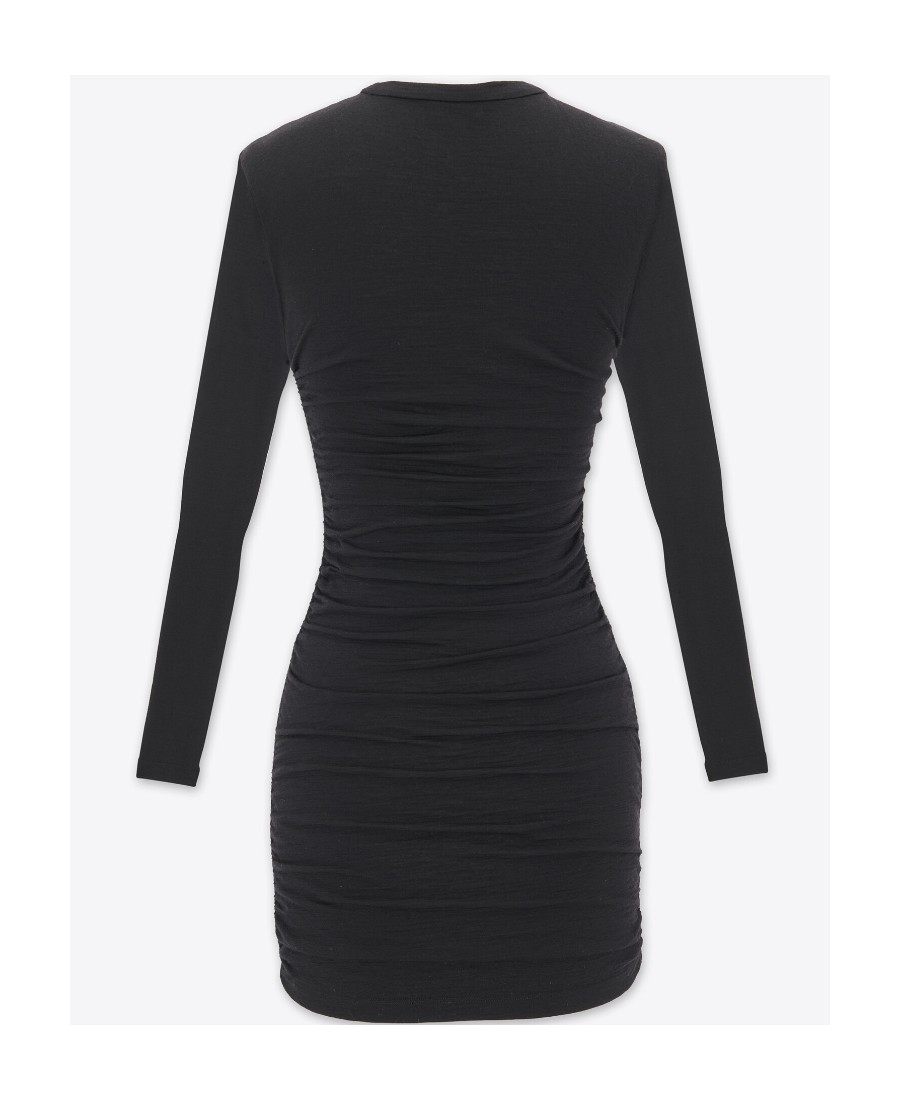 SAINT LAURENT圣罗兰 SS23 纯色圆领修身中长款长袖连衣裙 女款 黑色