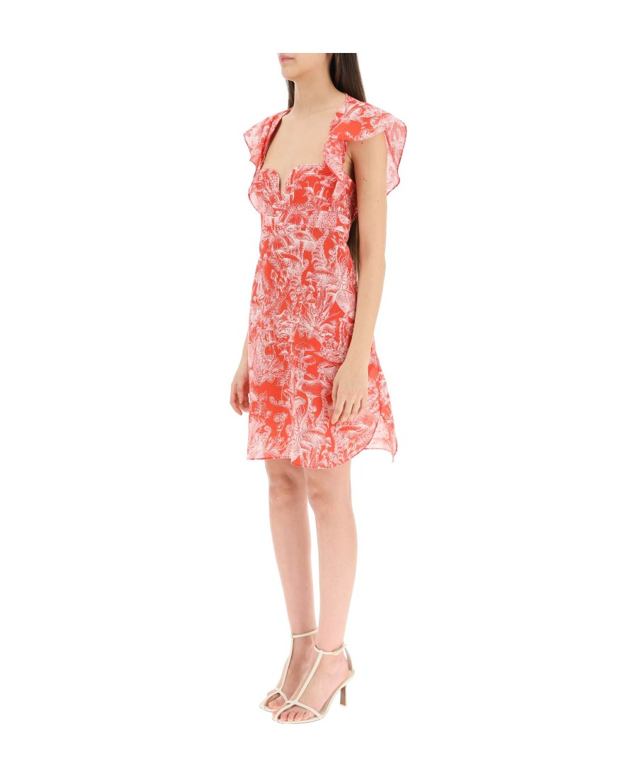 Stella McCartney SS22 花卉满印短袖连衣裙 女款 红色