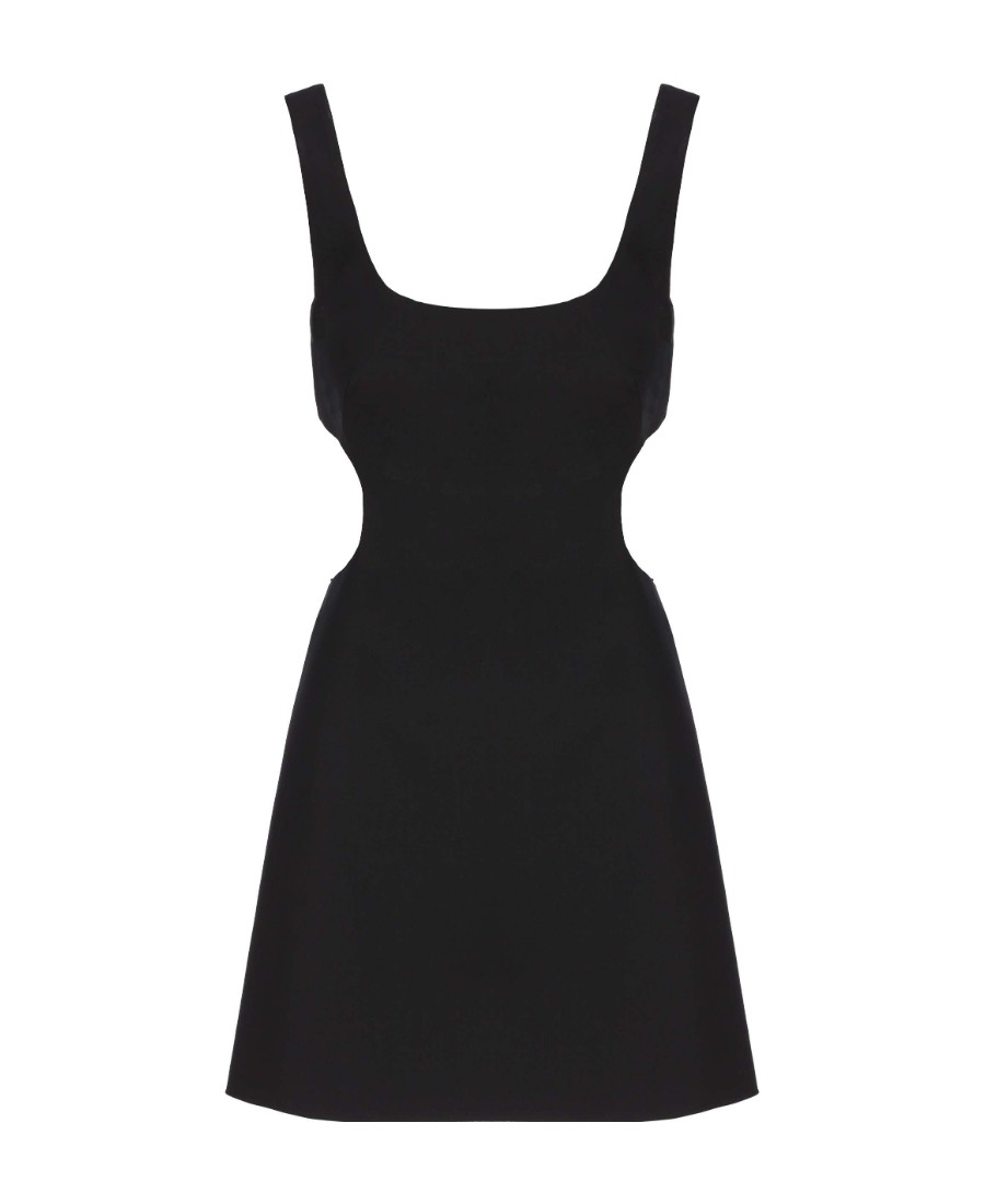 Valentino华伦天奴 SS22 纯色双肩圆领镂空无袖连衣裙 女款 黑色