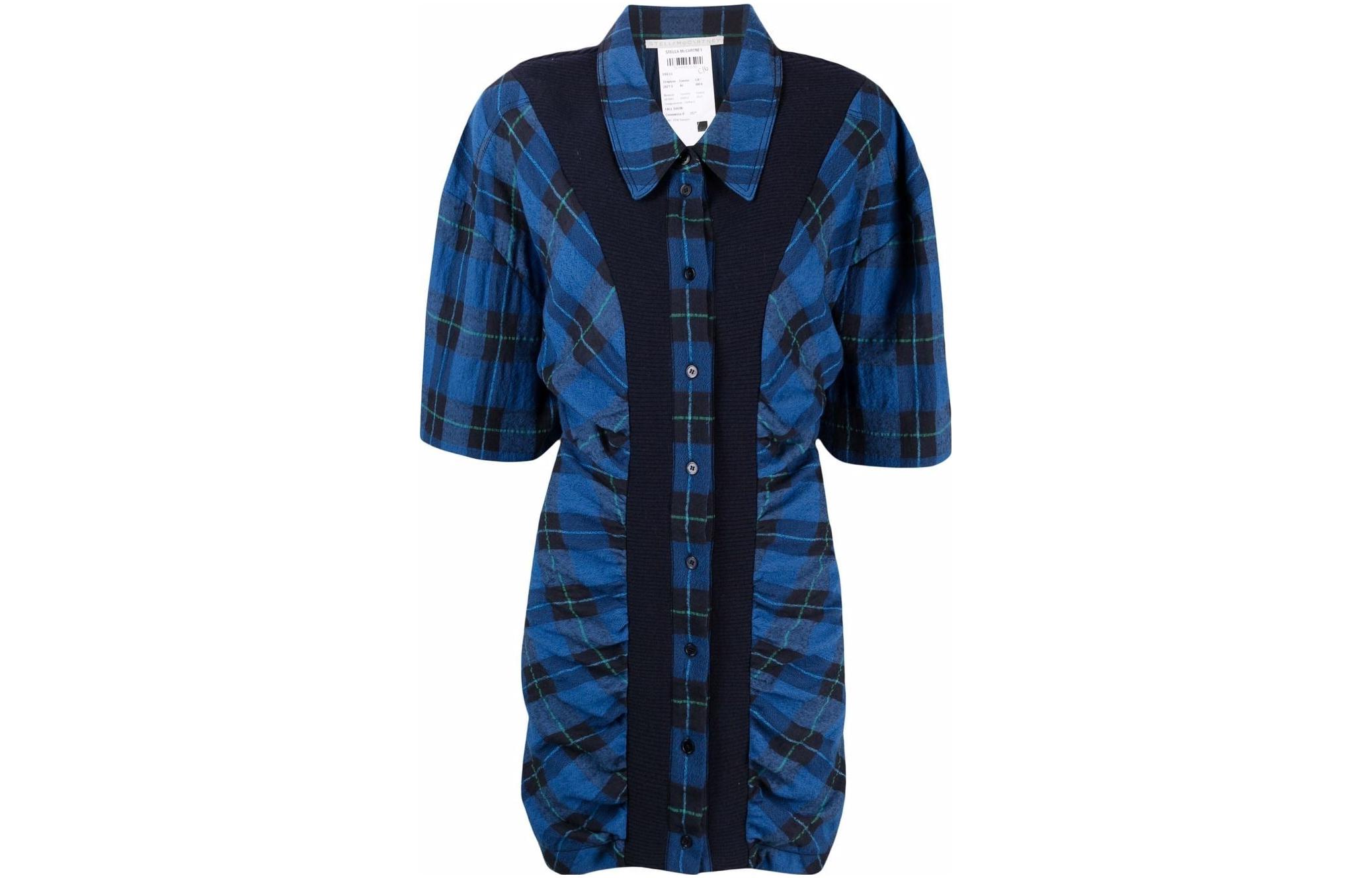 Stella McCartney SS23 翻领格纹中长款短袖连衣裙 蓝色