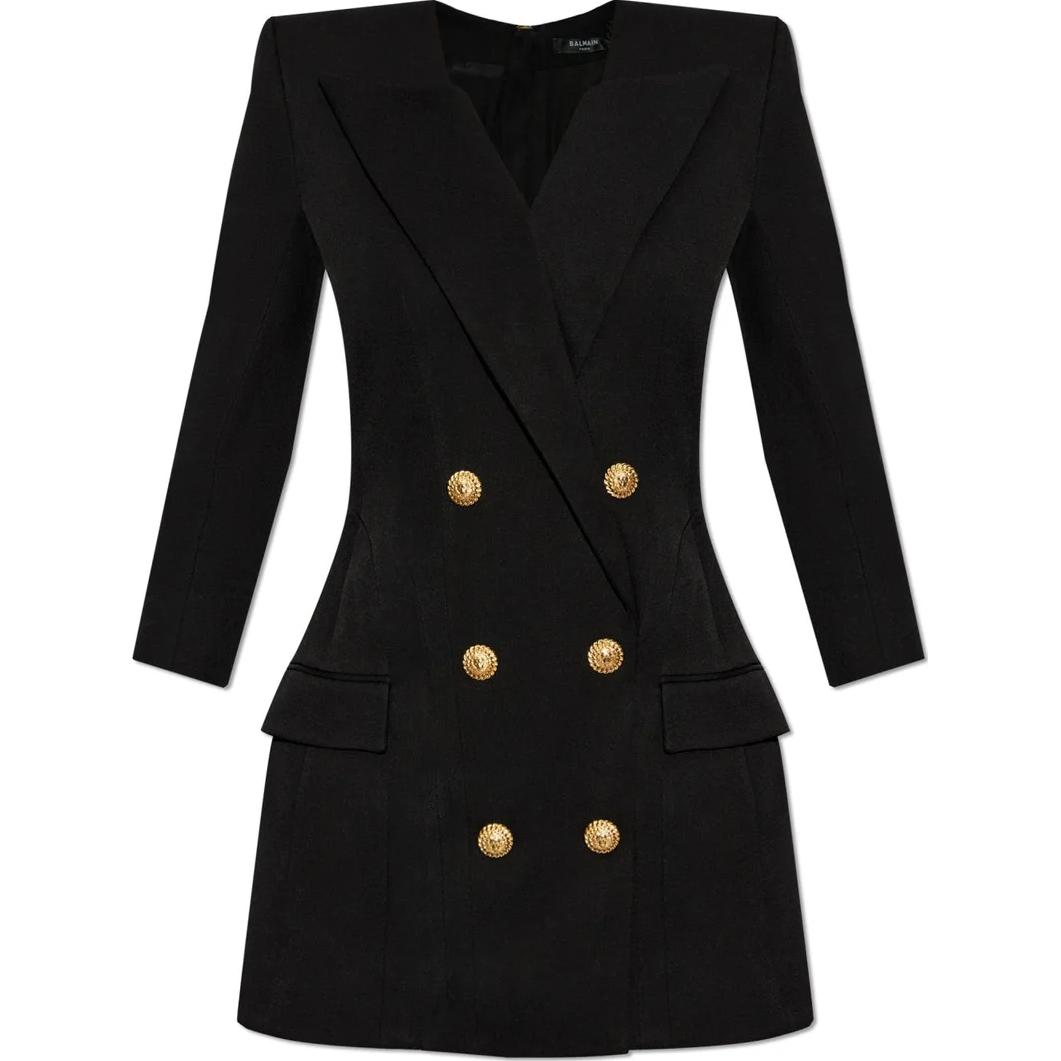 BALMAIN巴尔曼 纯色翻领双排扣修身短款长袖连衣裙 女款 黑色