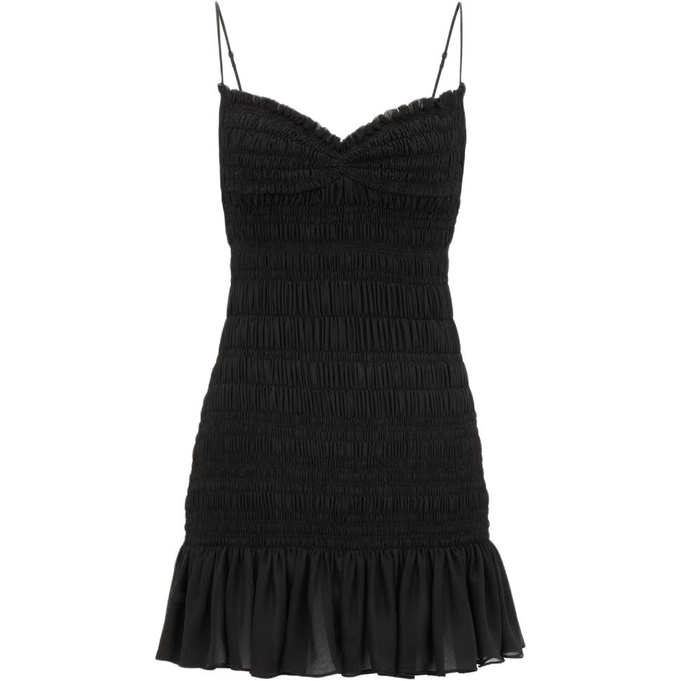 SAINT LAURENT圣罗兰 真丝平纹绉纱缩褶吊带连衣裙 女款 黑色