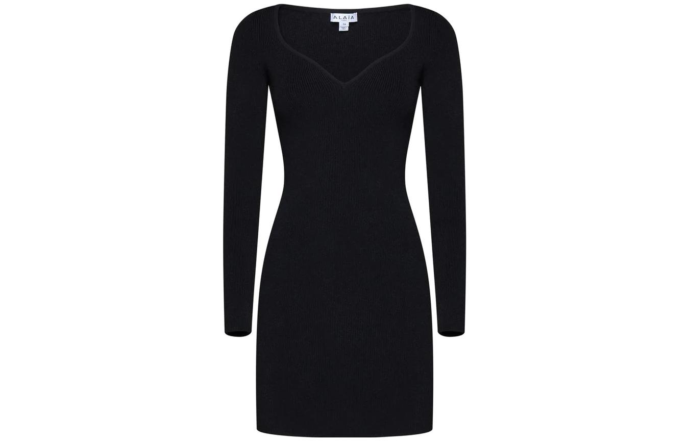 Alaia SS23 纯色V领修身短款休闲长袖连衣裙 女款 黑色