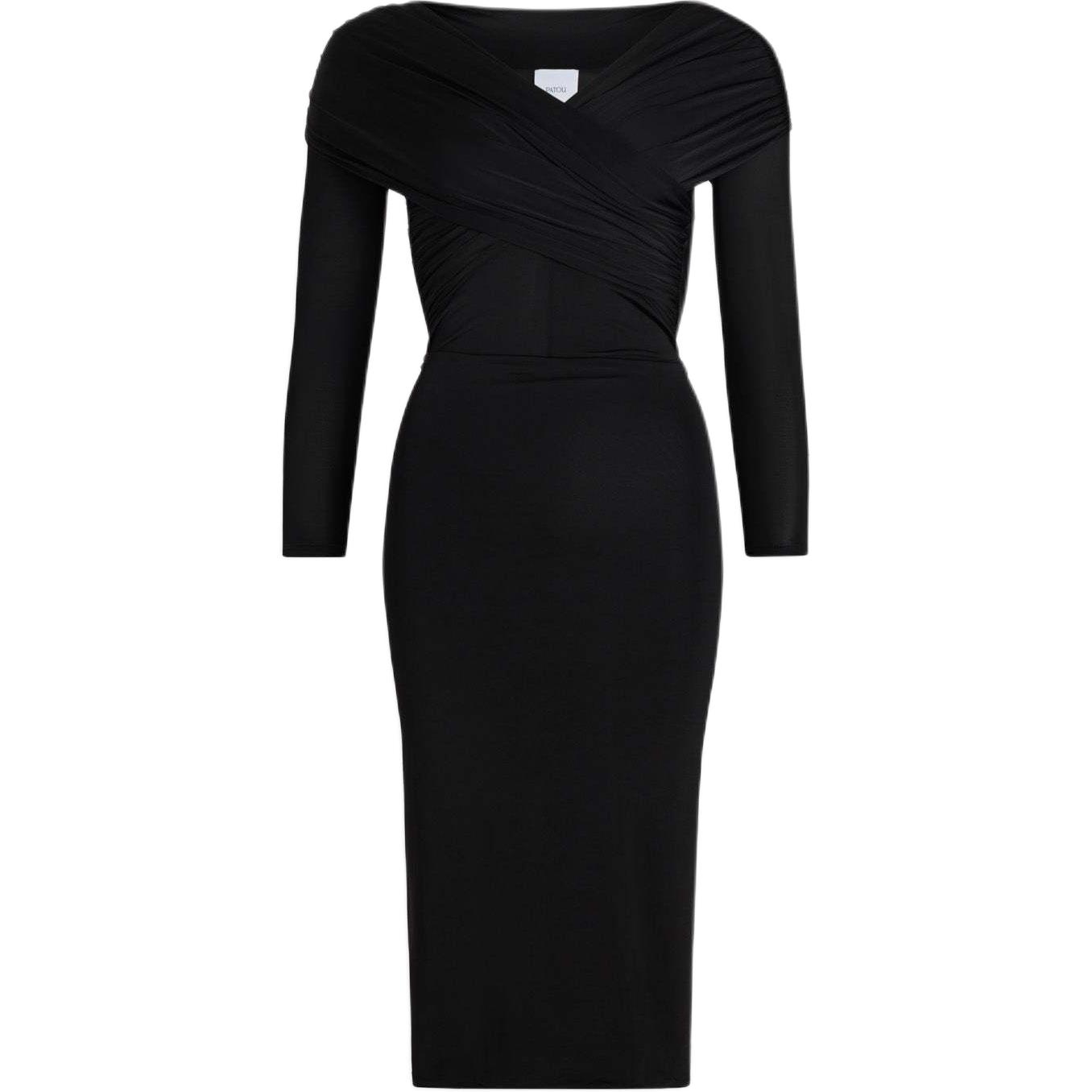 Patou 褶皱交叉纯色长袖连衣裙 女款 黑色