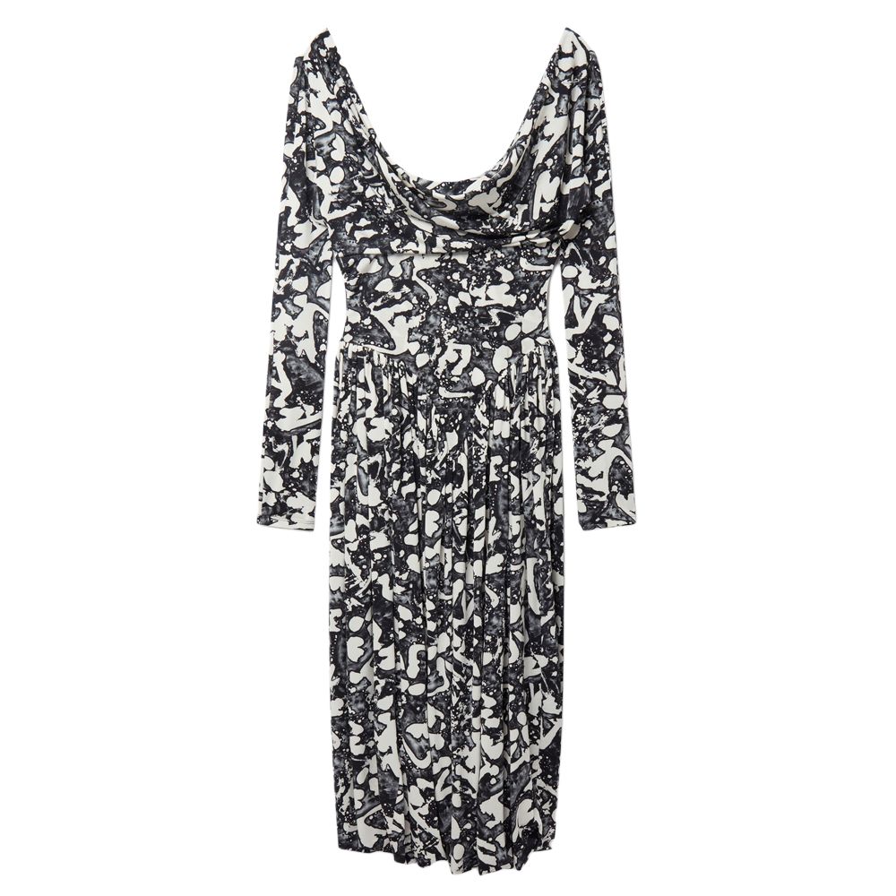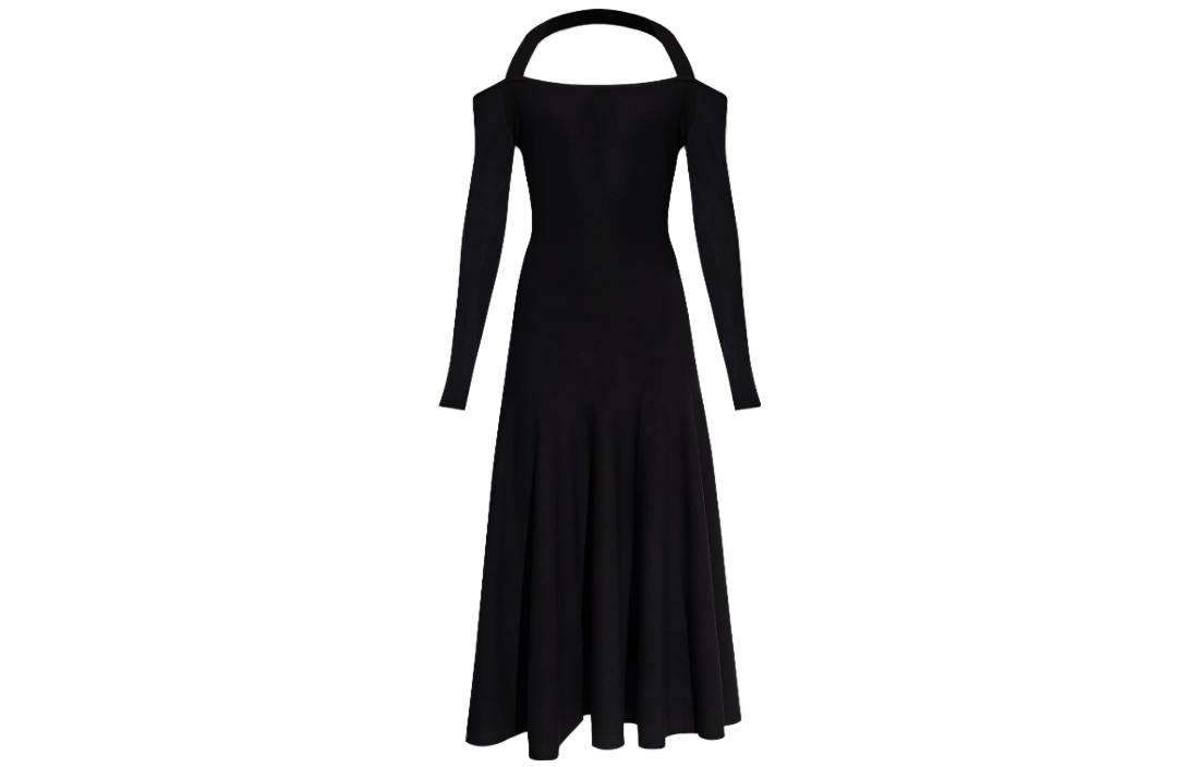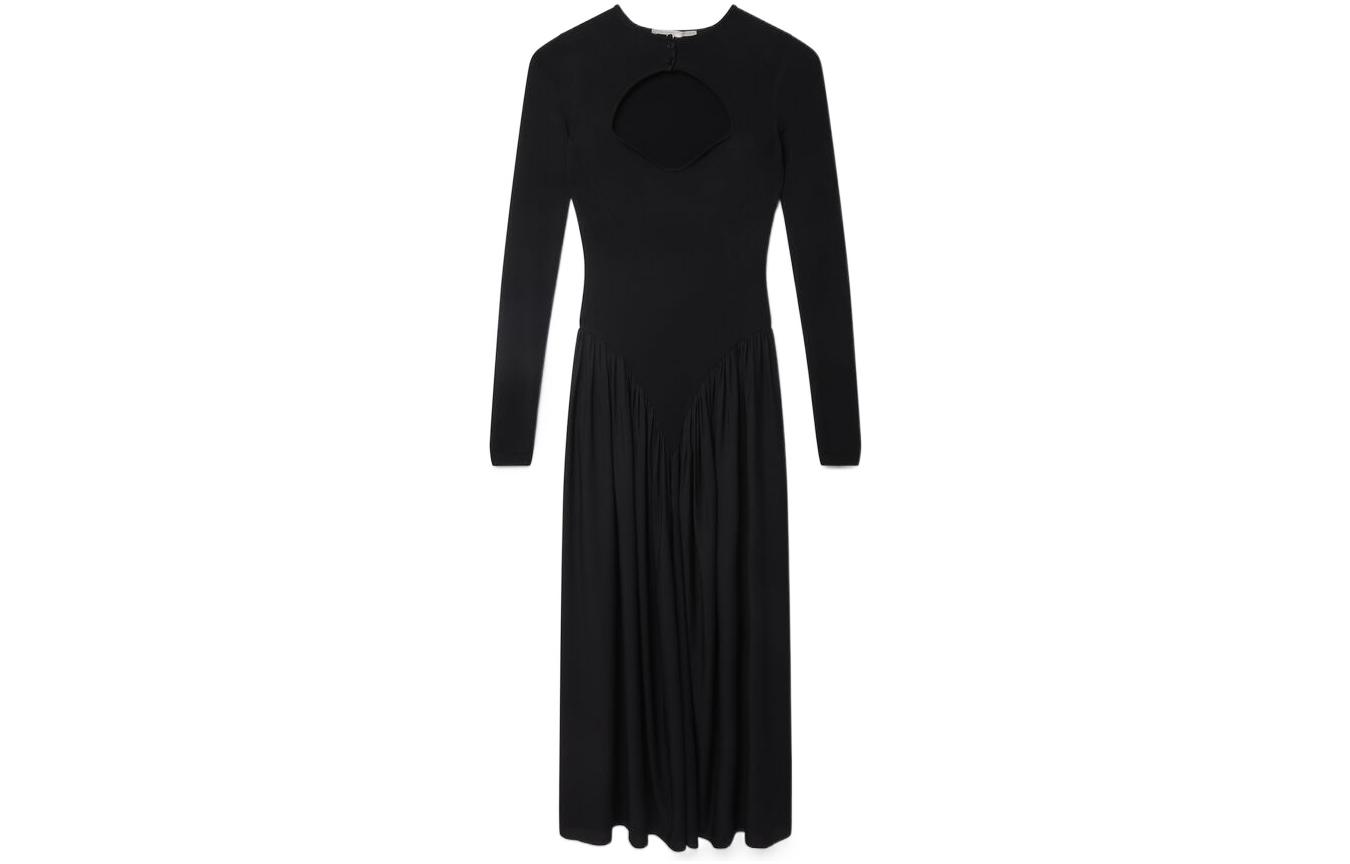Stella McCartney FW22 纯色镂空圆领长款长袖连衣裙 黑色