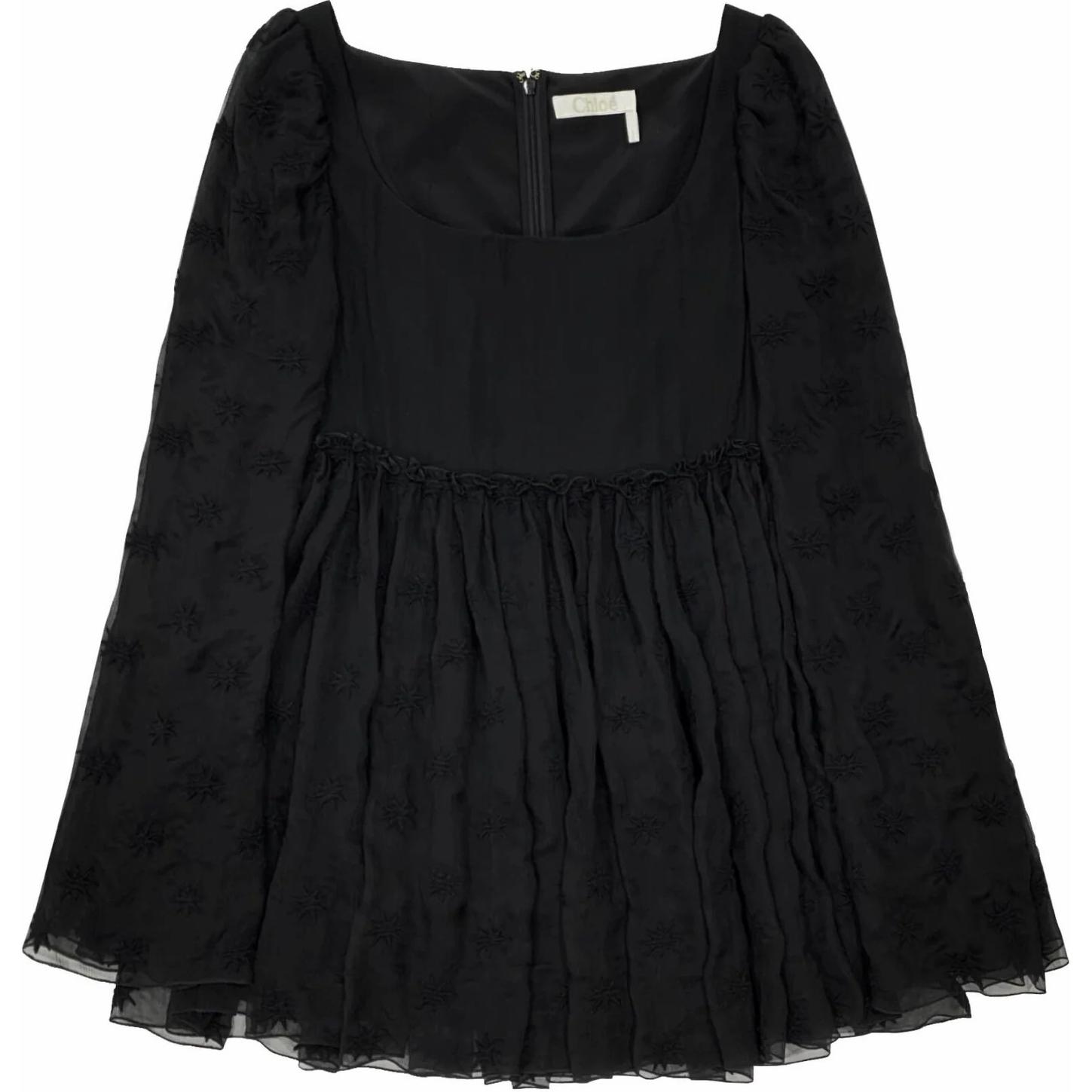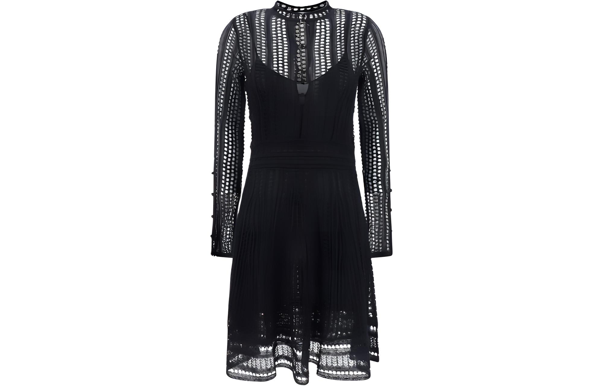 Chloe蔻依 半透明镂空中长款长袖连衣裙 女款 黑色