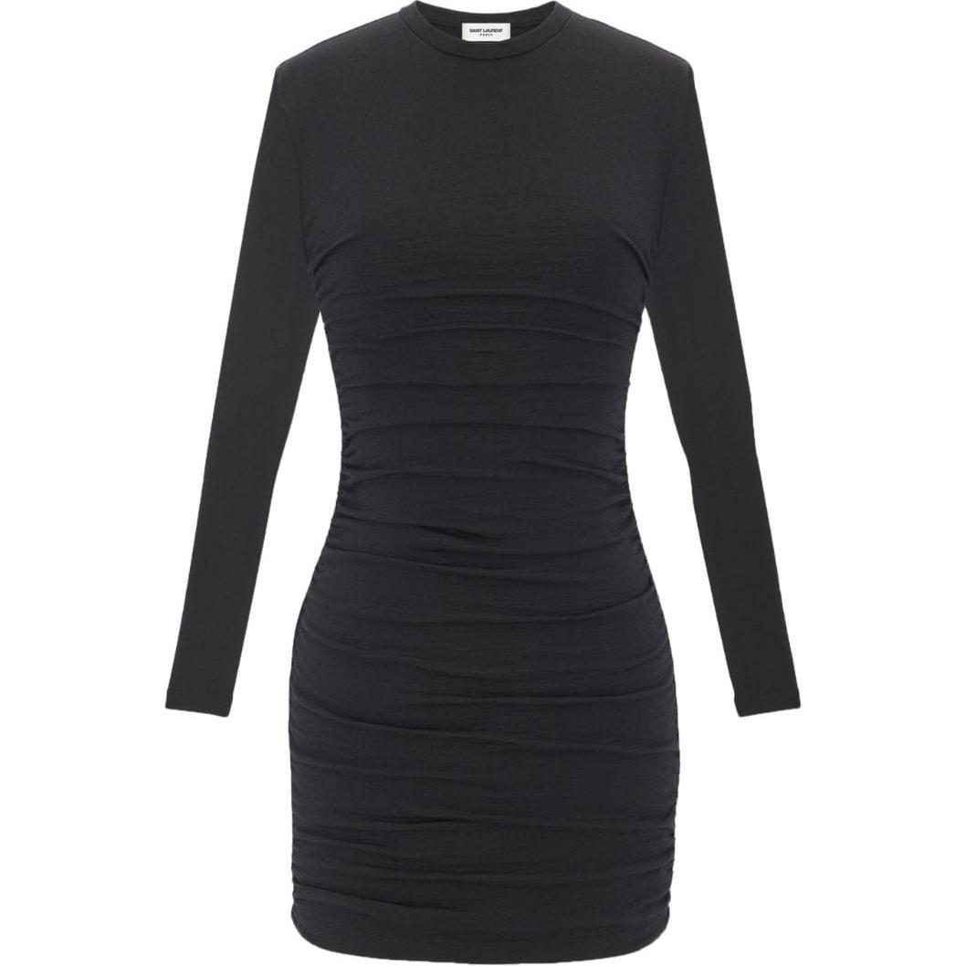SAINT LAURENT圣罗兰 SS23 纯色圆领修身中长款长袖连衣裙 女款 黑色