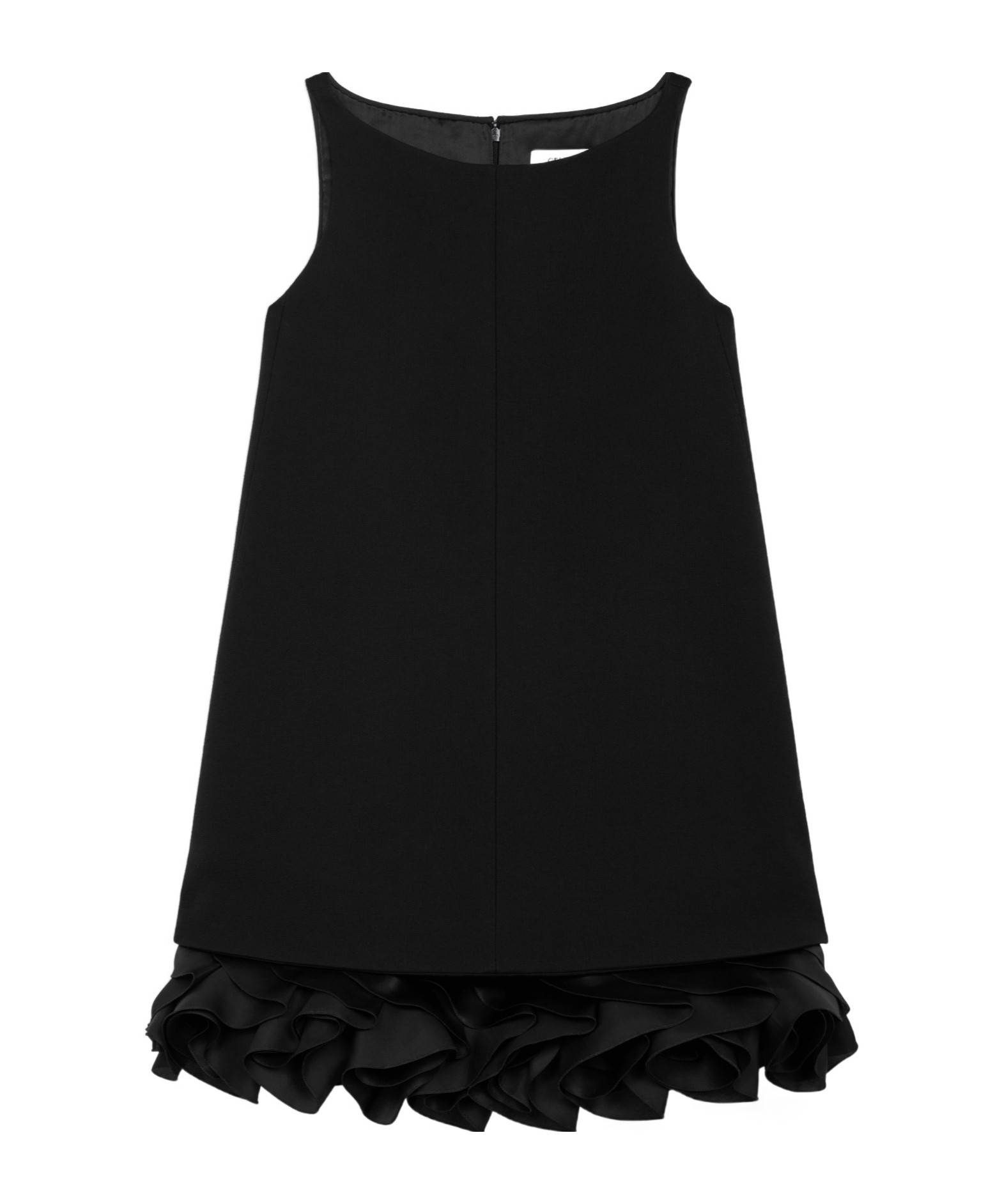 CELINE赛琳 SS25 纯色皱褶双层羊毛迷你无袖连衣裙 男女同款 黑色