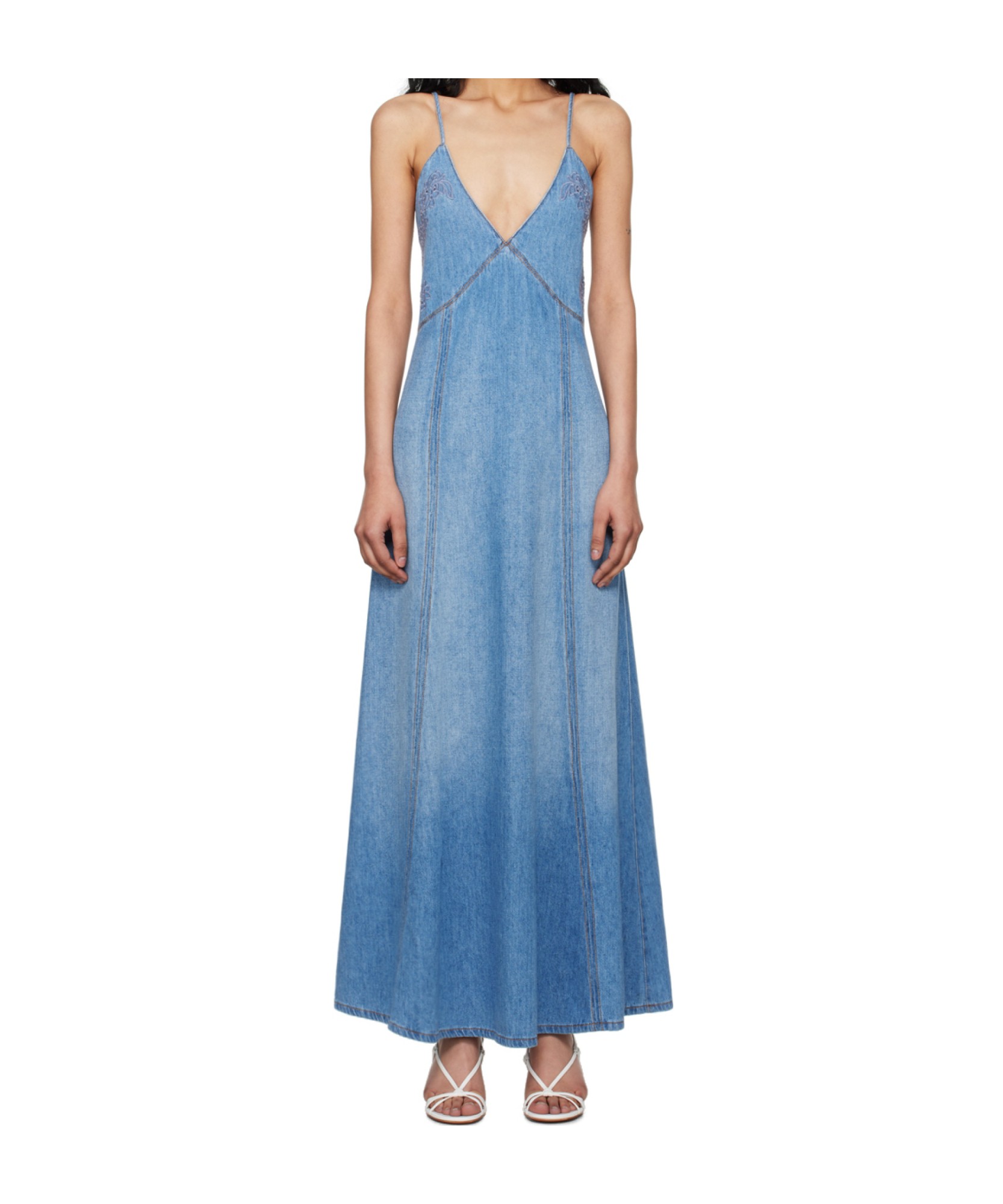 Chloe蔻依 SS24 刺绣镂空V领长款吊带连衣裙 女款 蓝色