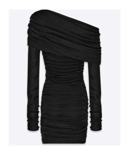 SAINT LAURENT圣罗兰 纯色褶皱单肩修身长袖连衣裙 女款 黑色