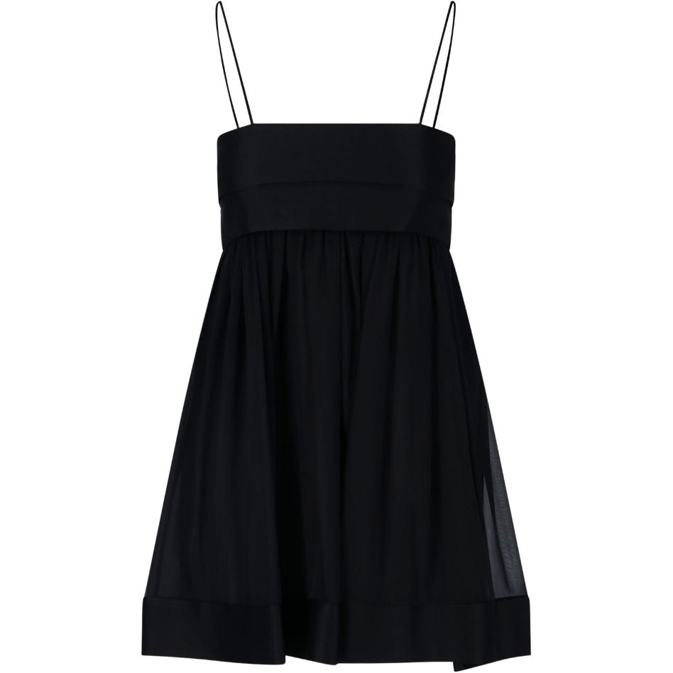 SAINT LAURENT圣罗兰 SS22 纯色百褶拼接无袖连衣裙 女款 黑色