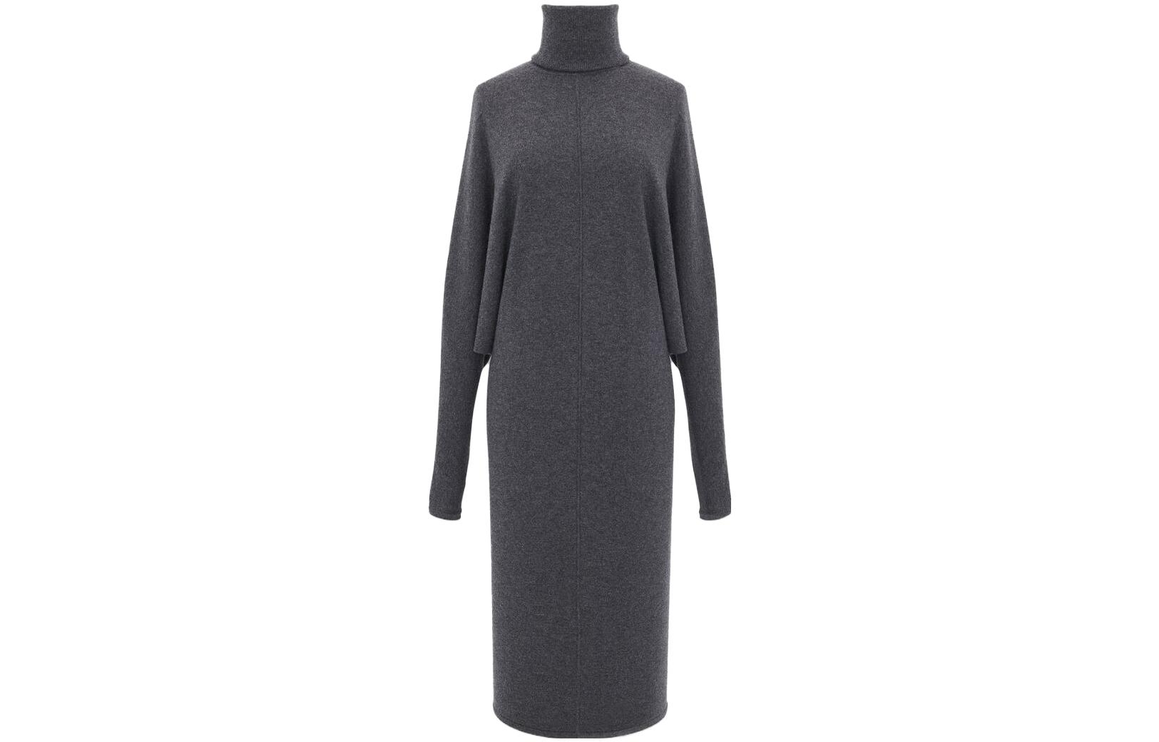 SAINT LAURENT圣罗兰 纯色高领中长款长袖连衣裙 女款 灰色