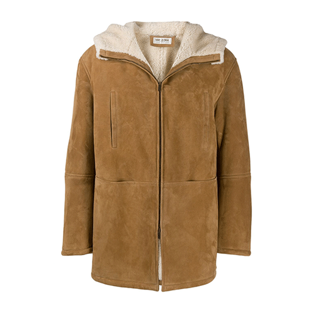 SAINT LAURENT圣罗兰 纯色连帽外套夹克 男款 棕色