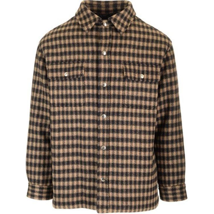 CELINE赛琳 SS25 格子单排扣长袖衬衫 男款 棕色