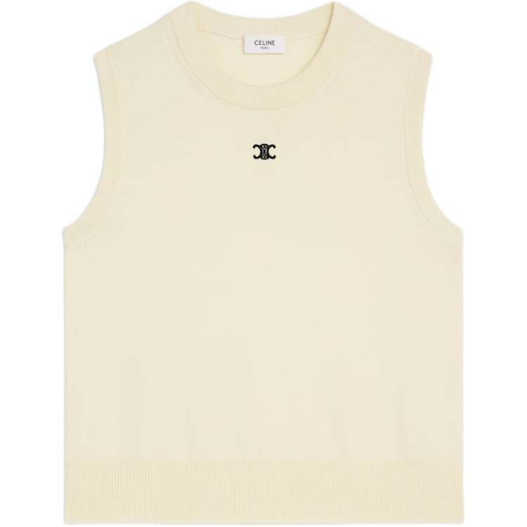 CELINE赛琳 Triomphe FW25 贴饰羊毛圆领罗纹饰边背心 女款