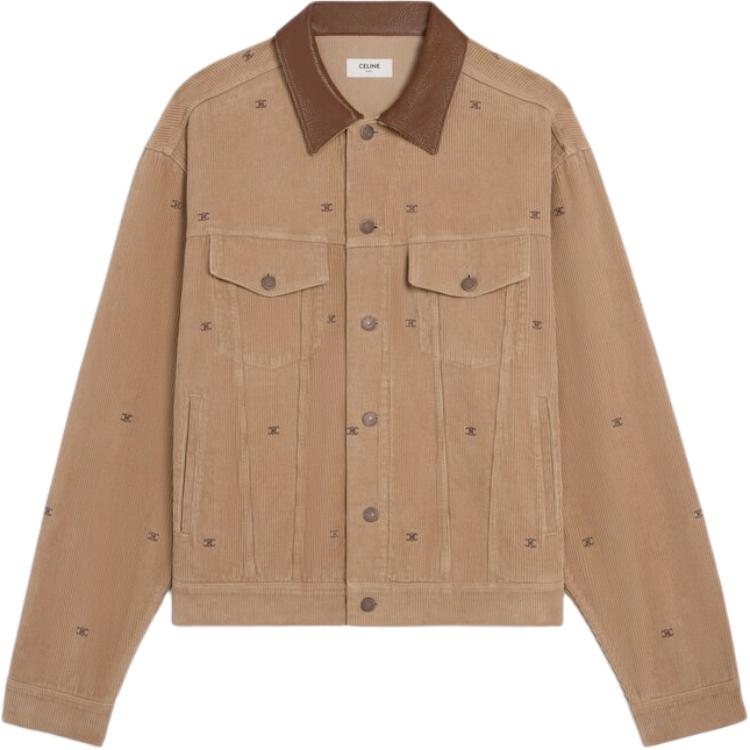 CELINE赛琳 TRIOMPHE刺绣印花皮革衬衫领长袖廓形夹克外套 男款