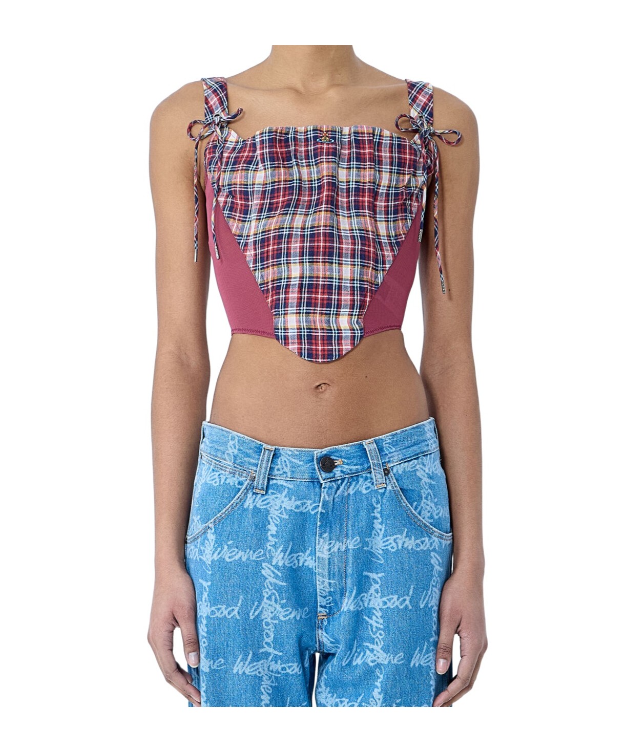 格纹无袖罩衫