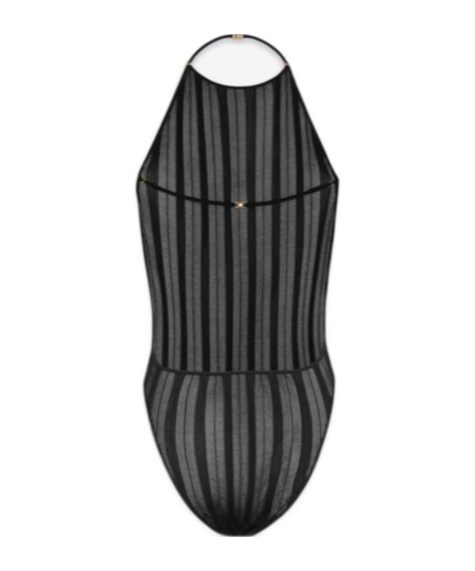 SAINT LAURENT圣罗兰 条纹针织露背三角连体衣 女款 黑色