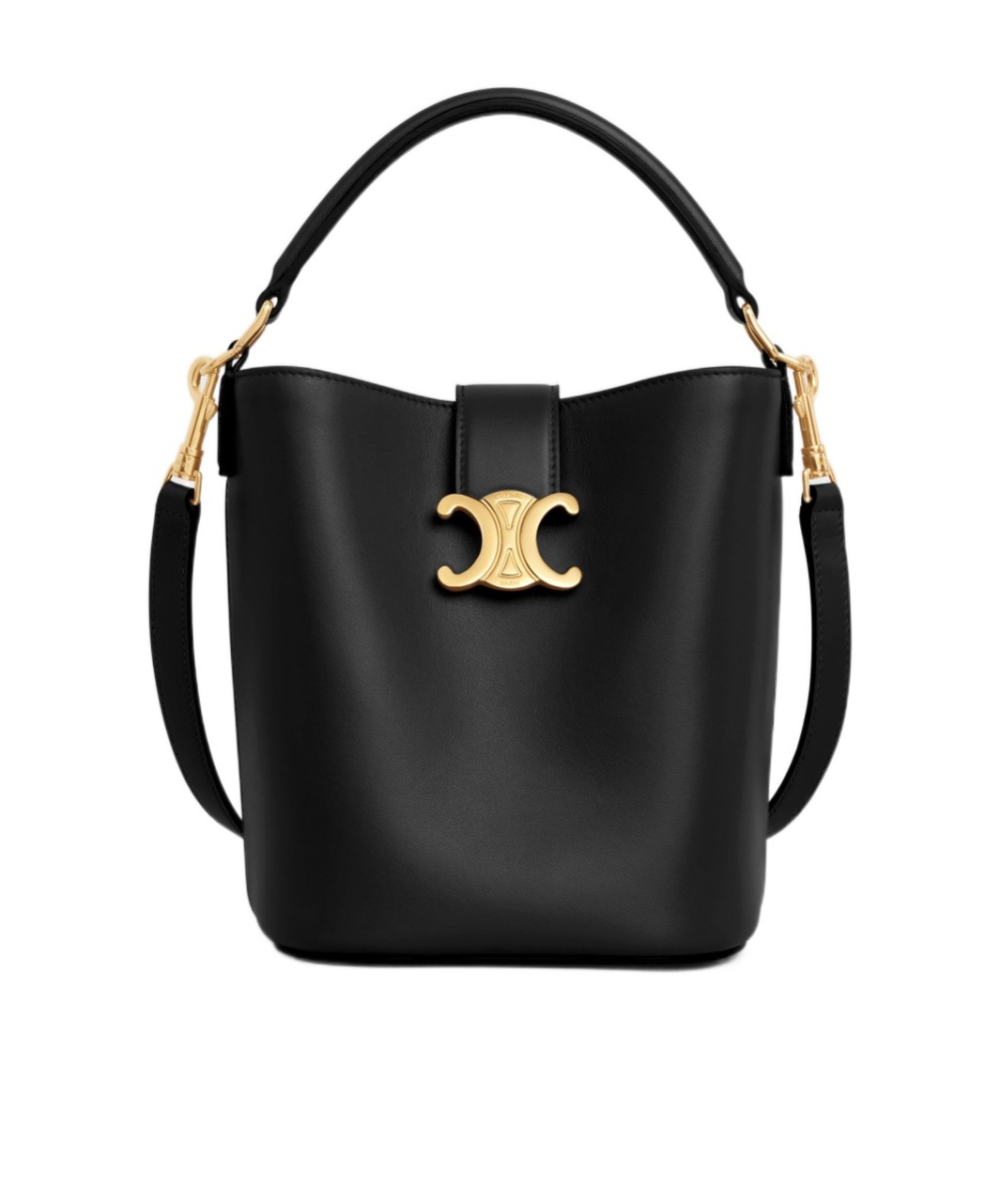 CELINE赛琳 Louise 可拆卸可调节肩带凯旋门磁扣开合 水桶包单肩斜挎包 牛皮革 手提包 小号 女款 黑色