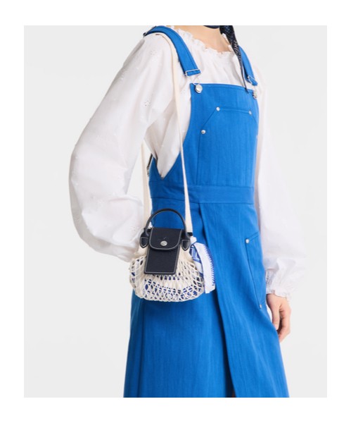 LONGCHAMP Le Pilage顶置手柄网纱设计 纯棉 单肩包 迷你 女款 海军蓝色