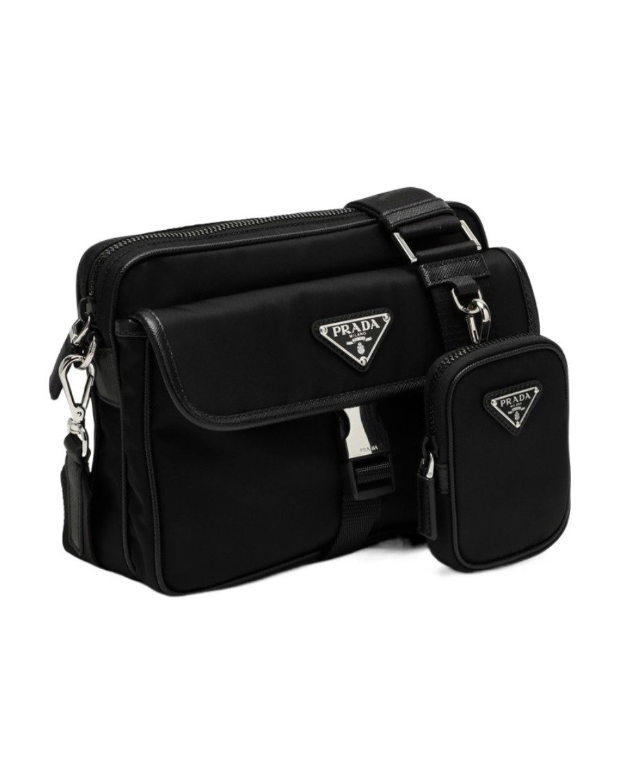 Re-Nylon再生尼龙和Saffiano皮革徽标单肩包