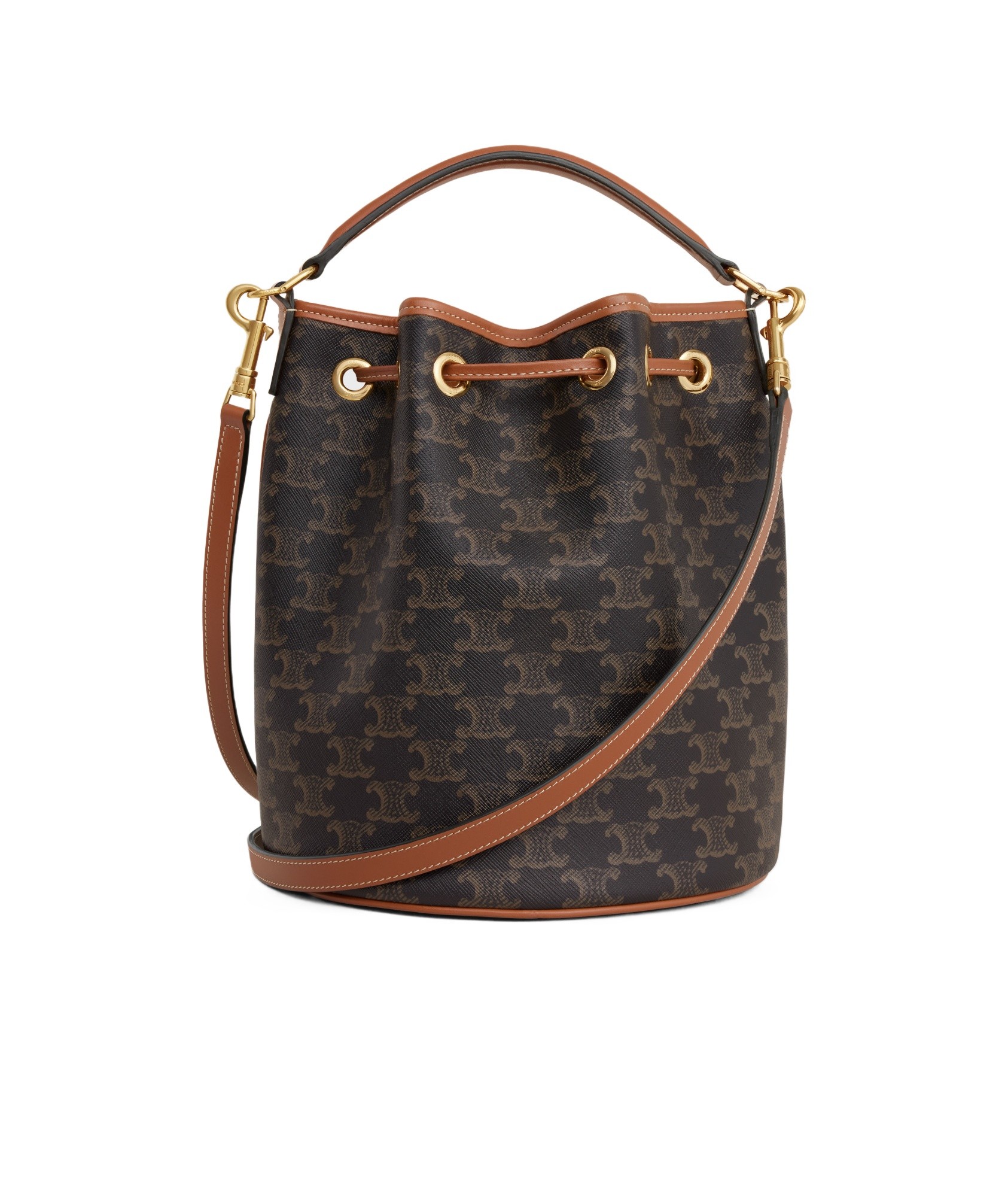 CELINE赛琳 Clara 微标印花Logo抽绳开合 水桶包单肩斜挎包 小牛皮 手提包 女款 棕色