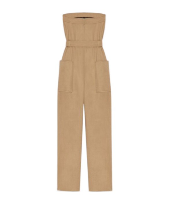 SAINT LAURENT圣罗兰 纯色无肩带束腰口袋阔腿连体裤 女款 米色