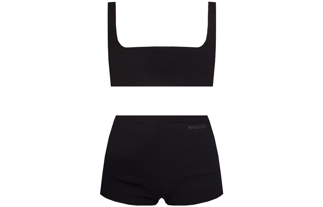 RED VALENTINO 纯色方领无袖背心短裤休闲套装 女款 2件套 黑色