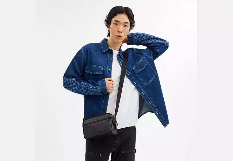 CELINE赛琳 Triomphe 经典老花满印可调节肩带 牛皮革 邮差包单肩斜挎包 男款 黑色