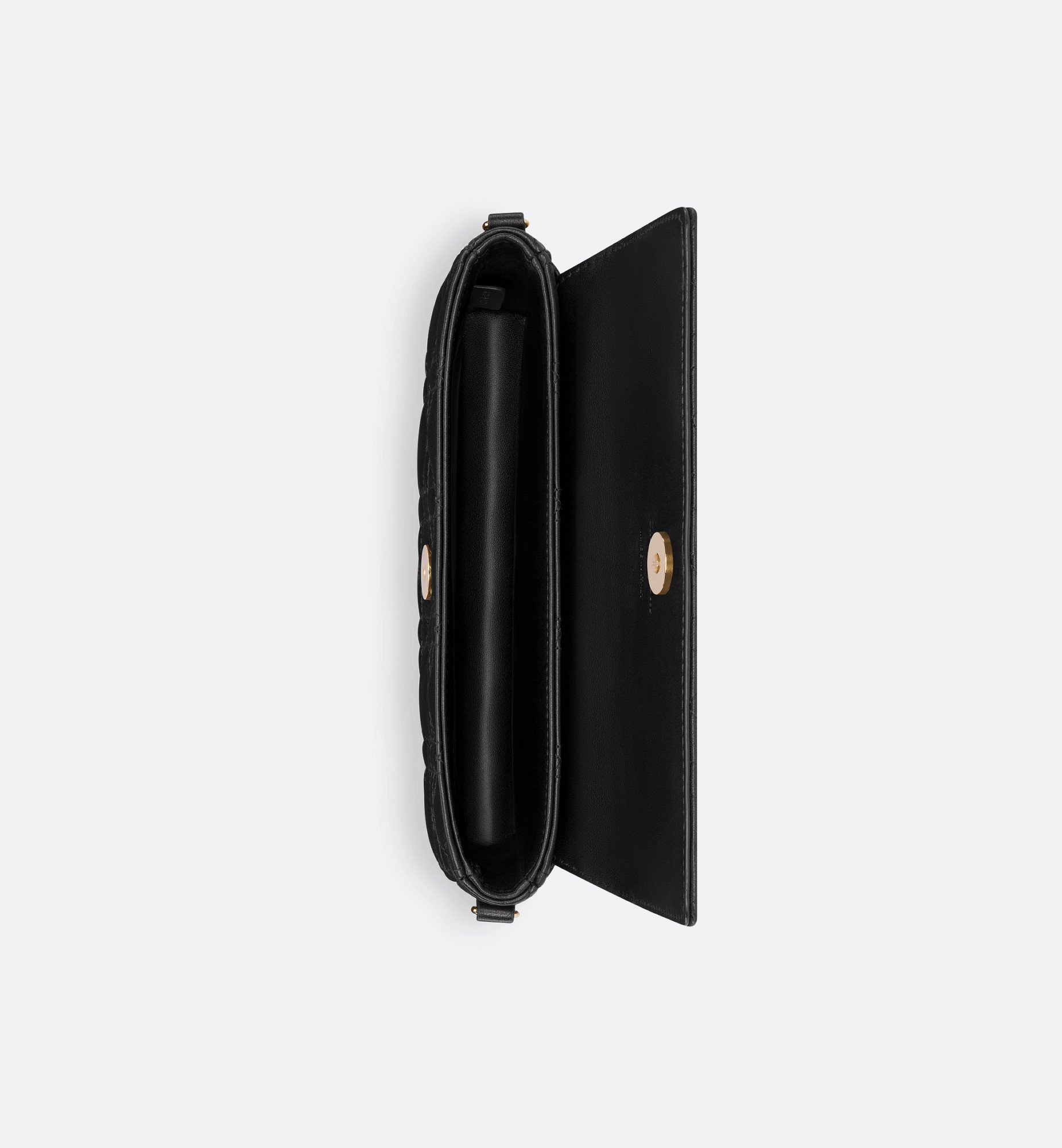 DIOR迪奥 Caro Logo压花标志复古金色饰面金属旋钮式CD扣环可拆卸肩带 牛皮革 斜挎包 中号 女款 黑色