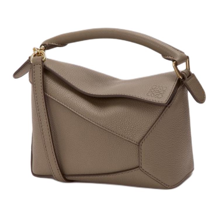 LOEWE罗意威 Puzzle 几何线条造型 拉链开合 粒面小牛皮 斜挎单肩手提包 迷你 女款 灰褐色