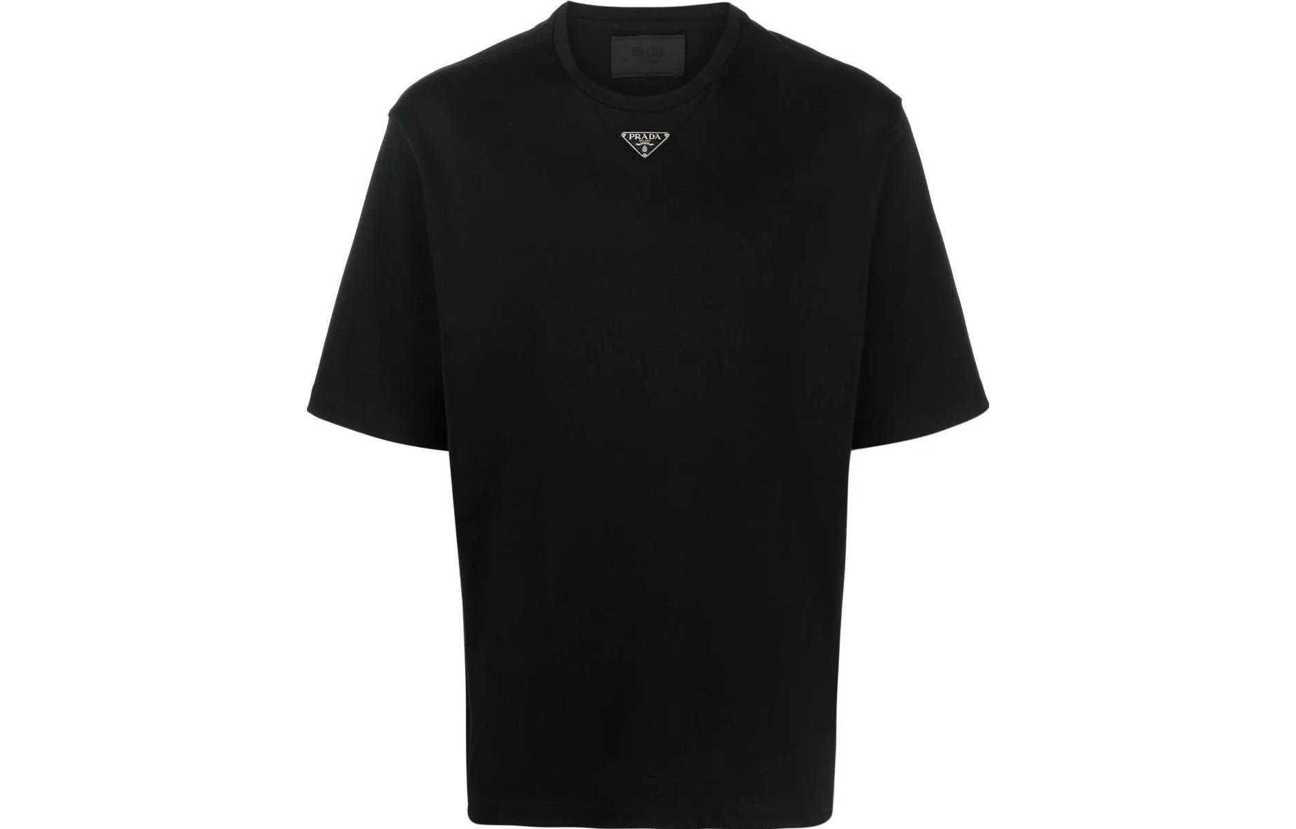 PRADA 纯色圆领合身套头直筒短袖T恤 男款 黑色
